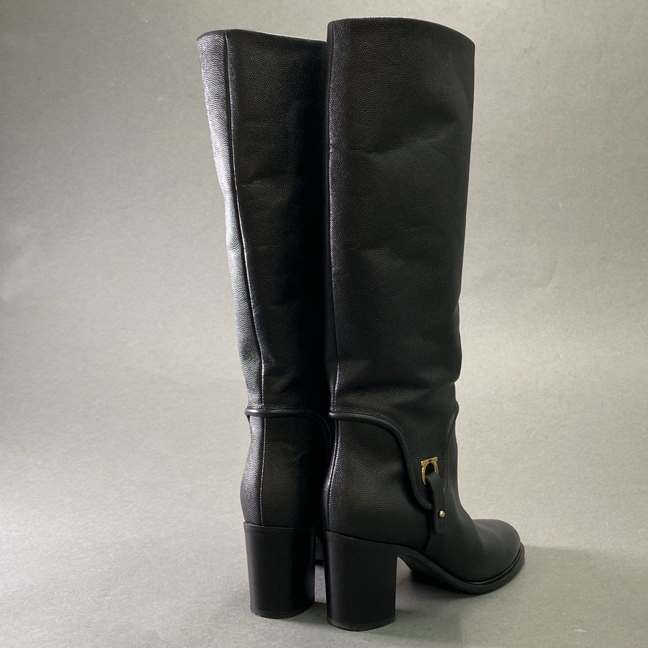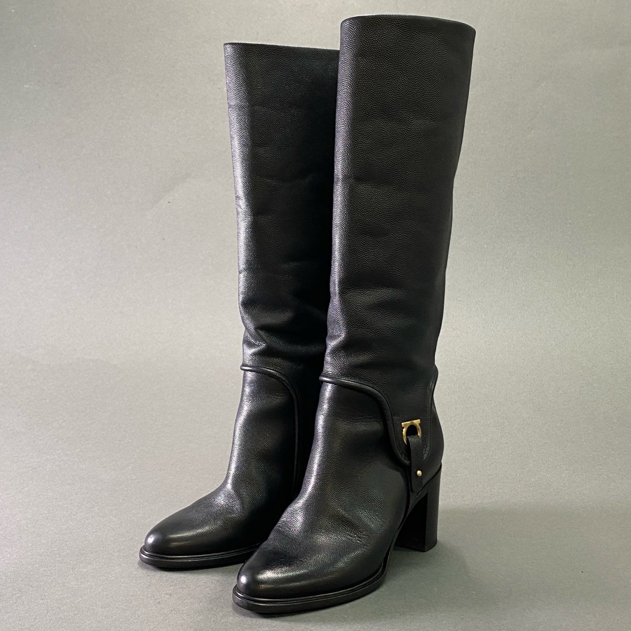 3f23 《美品》 Salvatore Ferragamo サルヴァトーレフェラガモ ガンチーニ ロングブーツ 6 ブラック レザー 本革 シューズ 女性靴