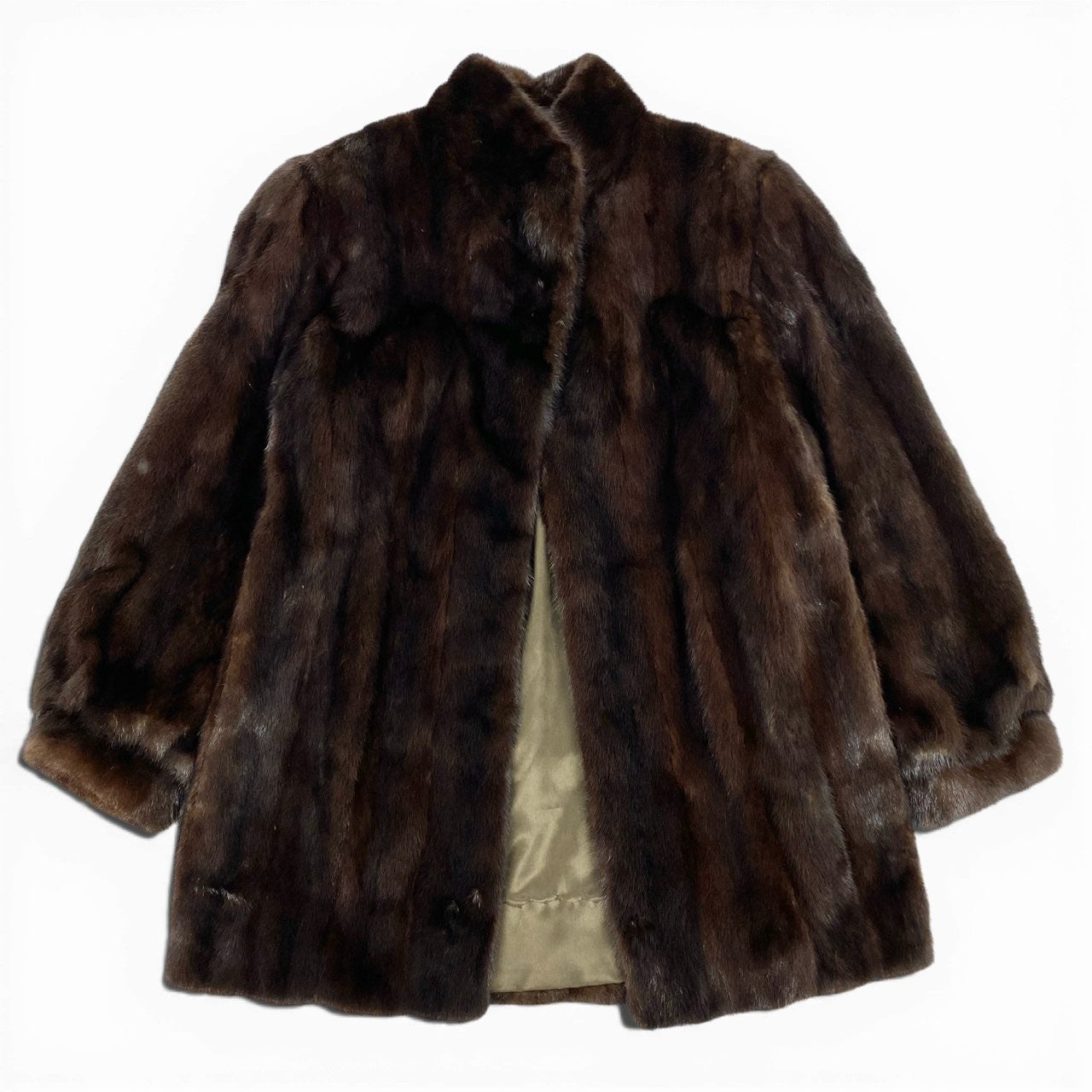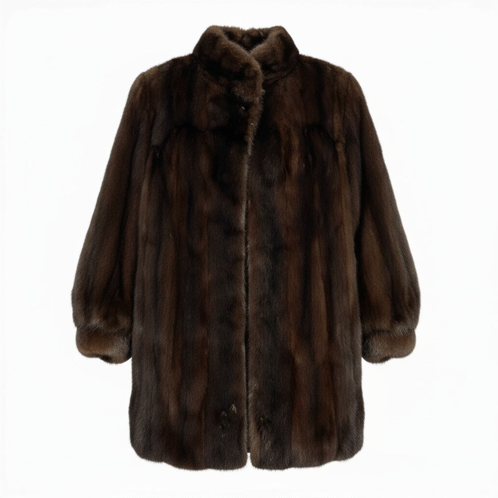 Rambultonのマホガニーミンクを使用した毛皮コートです。 カラーは深みのあるブラウン系で、落ち着きと高級感を兼ね備えた印象です。 毛足は短めで密度が高く、滑らかな艶感がミンク特有の上質さを引き立てます。 デイリーからきれいめなお出かけまで幅広く活躍し、大人の冬スタイルを格上げしてくれる一着です。