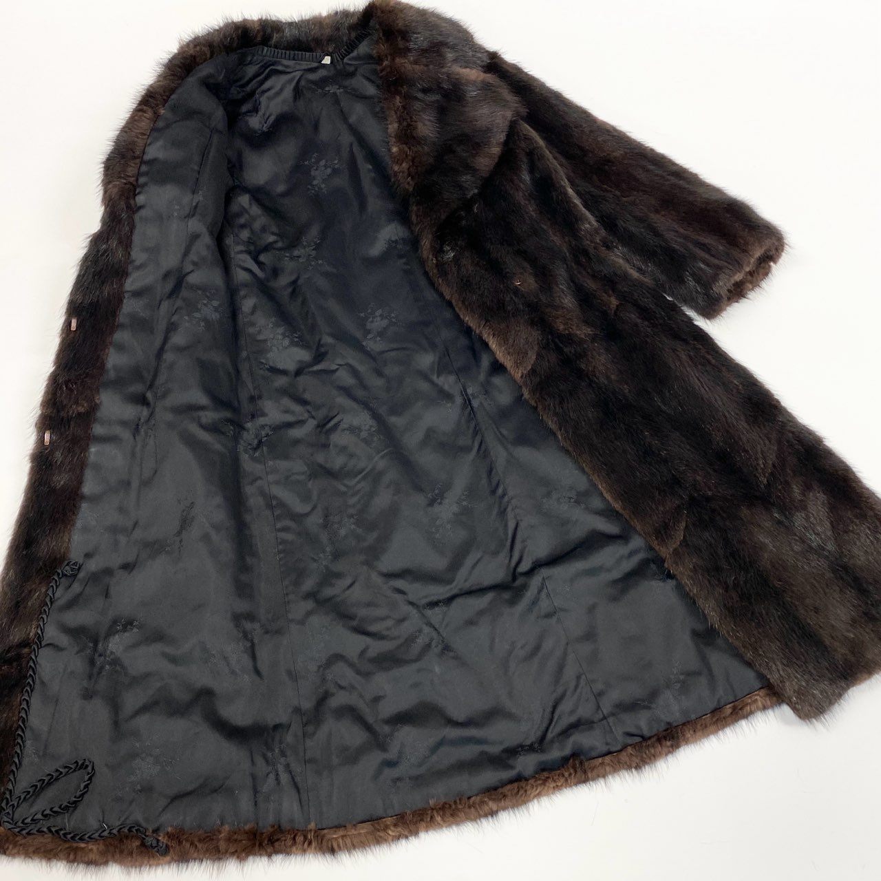 48a22 本毛皮 ロングコート サイズ11 ダークブラウン リアルファー FUR COATo07t