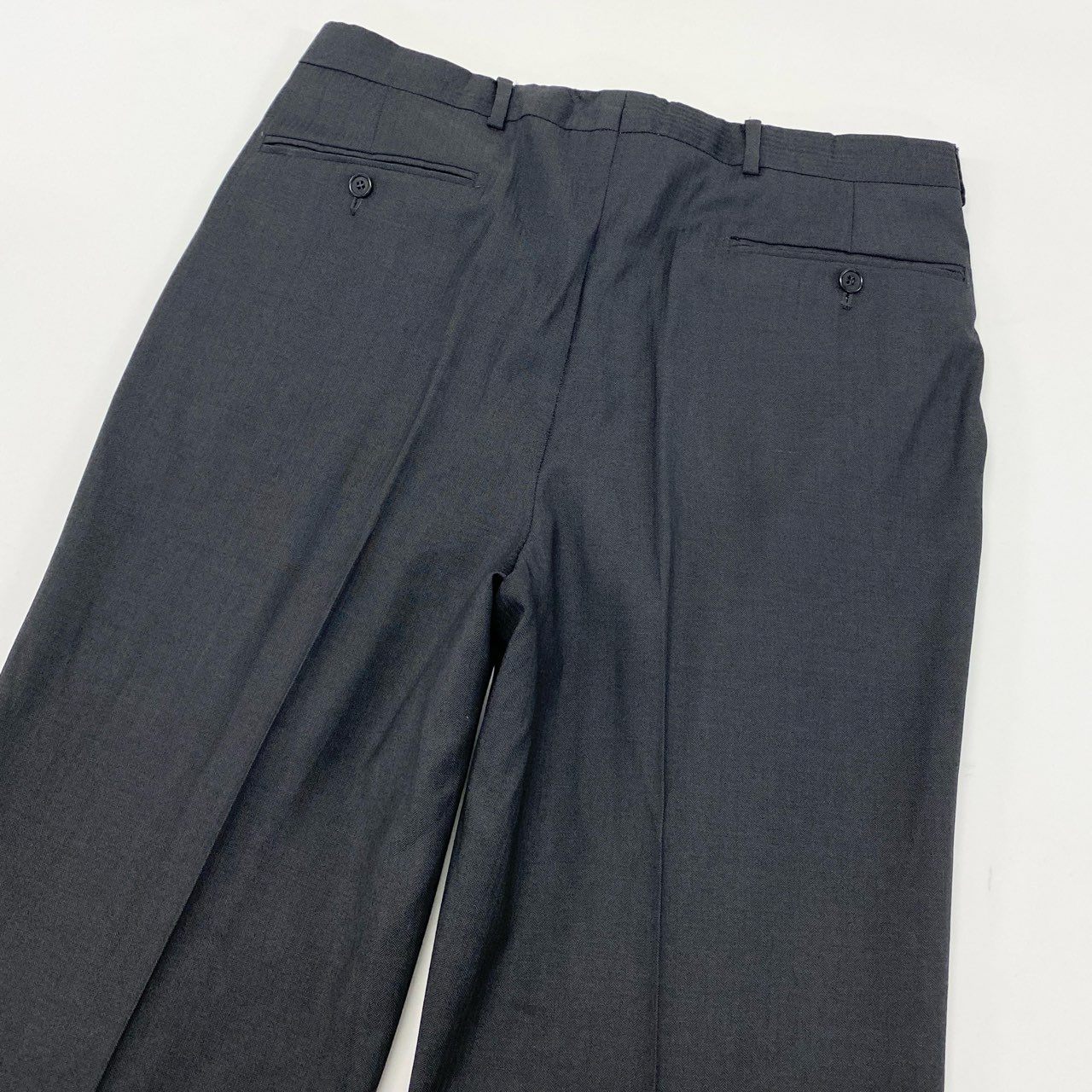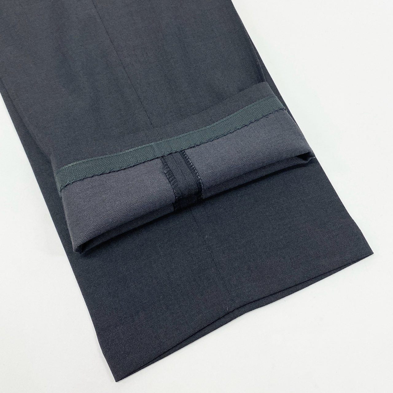 カラーは深みのある「チャコールグレー」で、ビジネスからフォーマルまで幅広く対応できる落ち着いたトーンです。柄は無地に近い微細な織り感で、派手さを抑えながらも素材の品の良さが際立つデザインとなっています。素材はしなやかで上質なウールを使用しており、上品な軽い光沢感がフェラガモらしい高級感を演出します。クラシックなノッチドラペルとフラップポケット、ストレートシルエットのパンツにより、長く愛用しやすい普遍的な一着です。ビジネススーツとしてはもちろん、式典・訪問・会食など「きちんと感」を求められる場にも最適です。