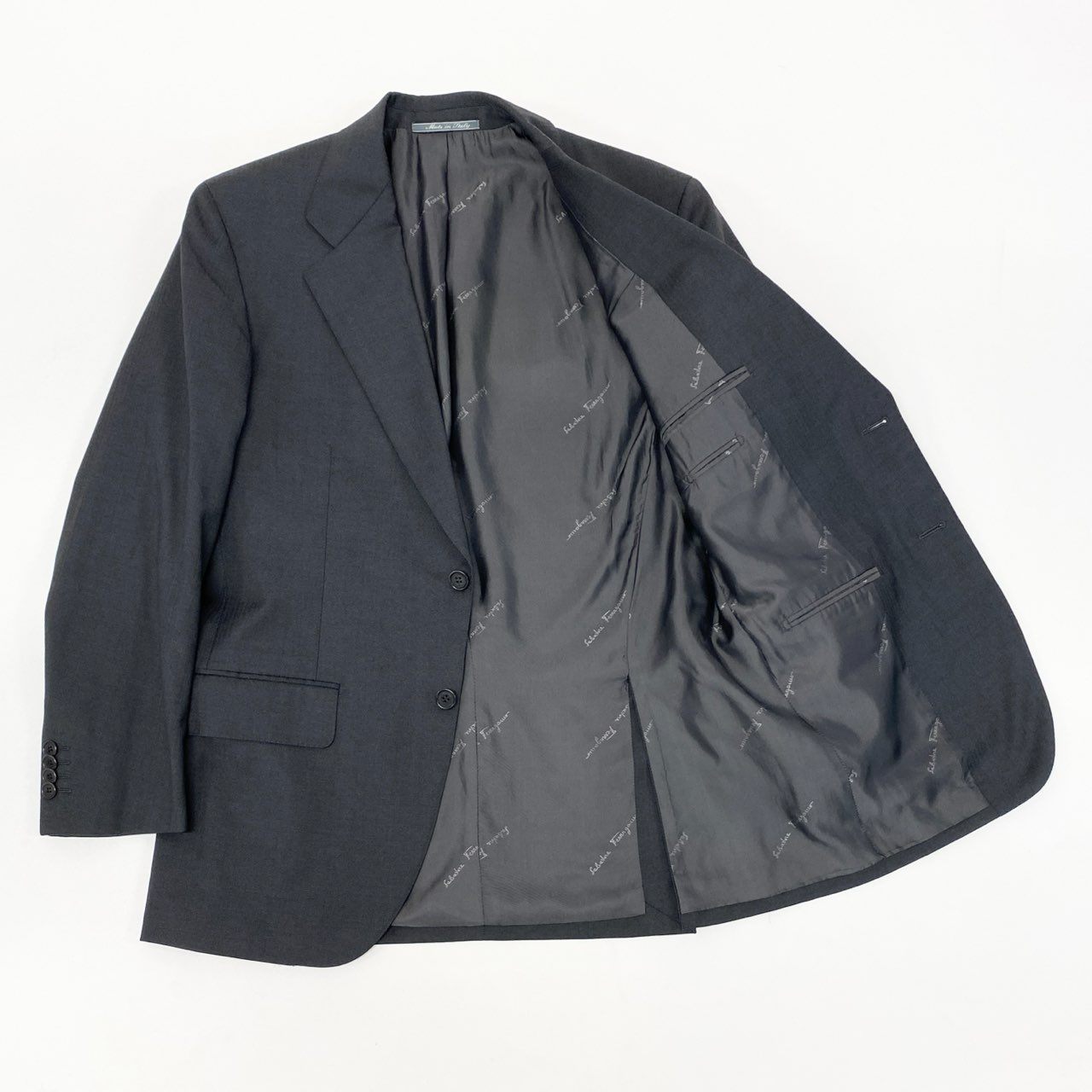 17k9 Salvatore Ferragamo サルヴァトーレ フェラガモ イタリア製 セットアップ スーツ ビジネス フォーマル ジャケット パンツ 48 ダークグレー ウール メンズo07t
