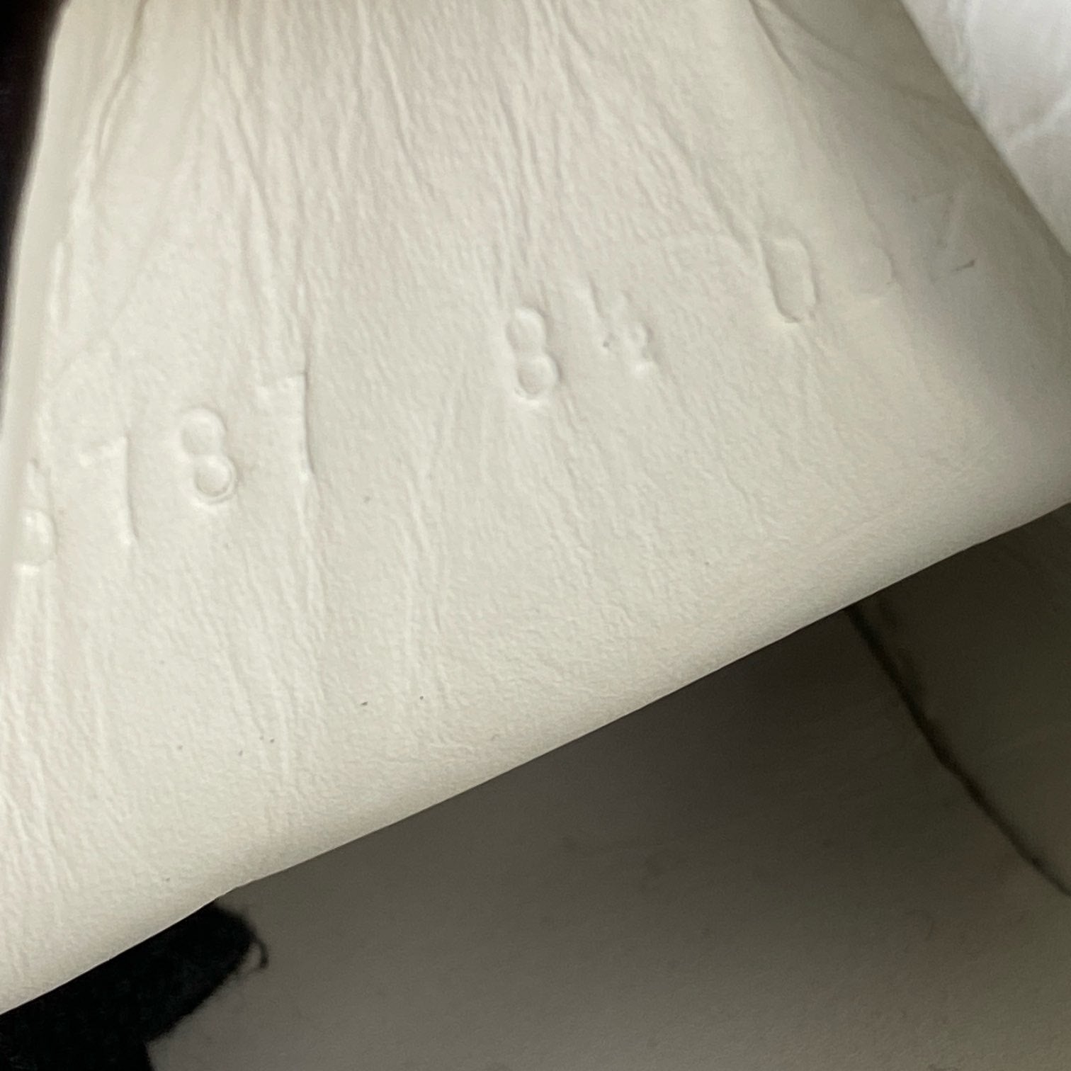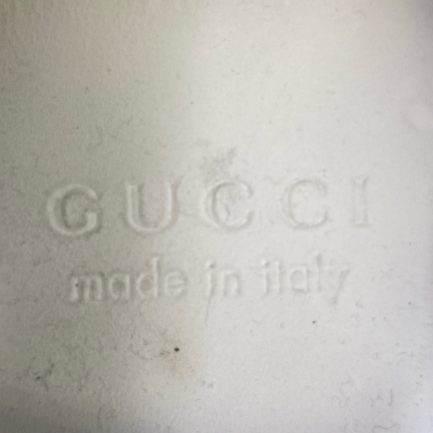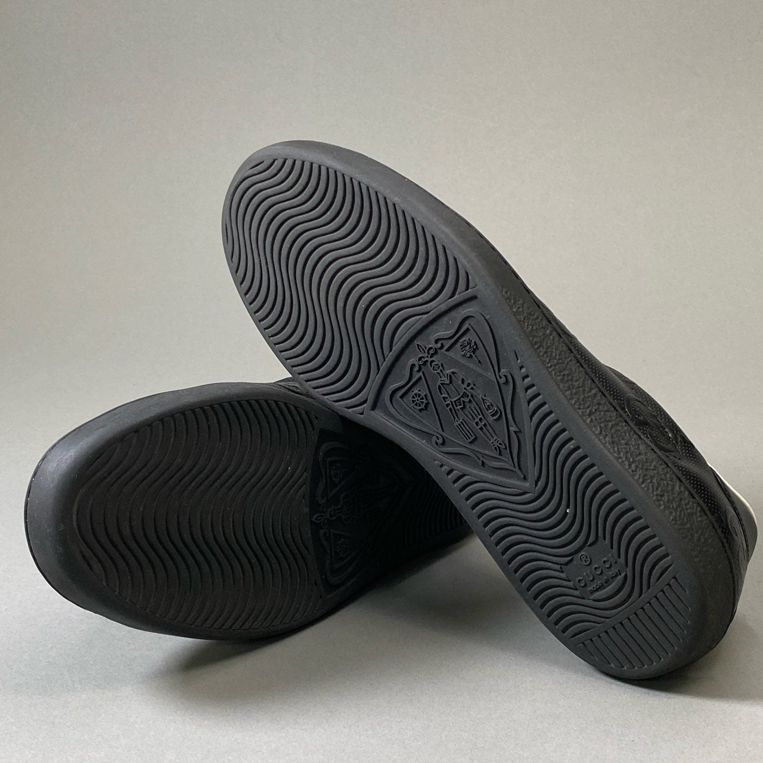 グッチのレザースニーカー「625787」。ブラックを基調にしたアッパーには、GGパターンのエンボス加工が施され、さりげない高級感を演出します。光沢を抑えたマットレザー調の質感に、ブラックソールとブラックシューレースを組み合わせたオールブラック仕様。内側はホワイトレザーで切り替えられており、コントラストがモダンな印象を与えます。シンプルながらもブランドらしい存在感があり、都会的なカジュアルコーデを格上げする一足です。
