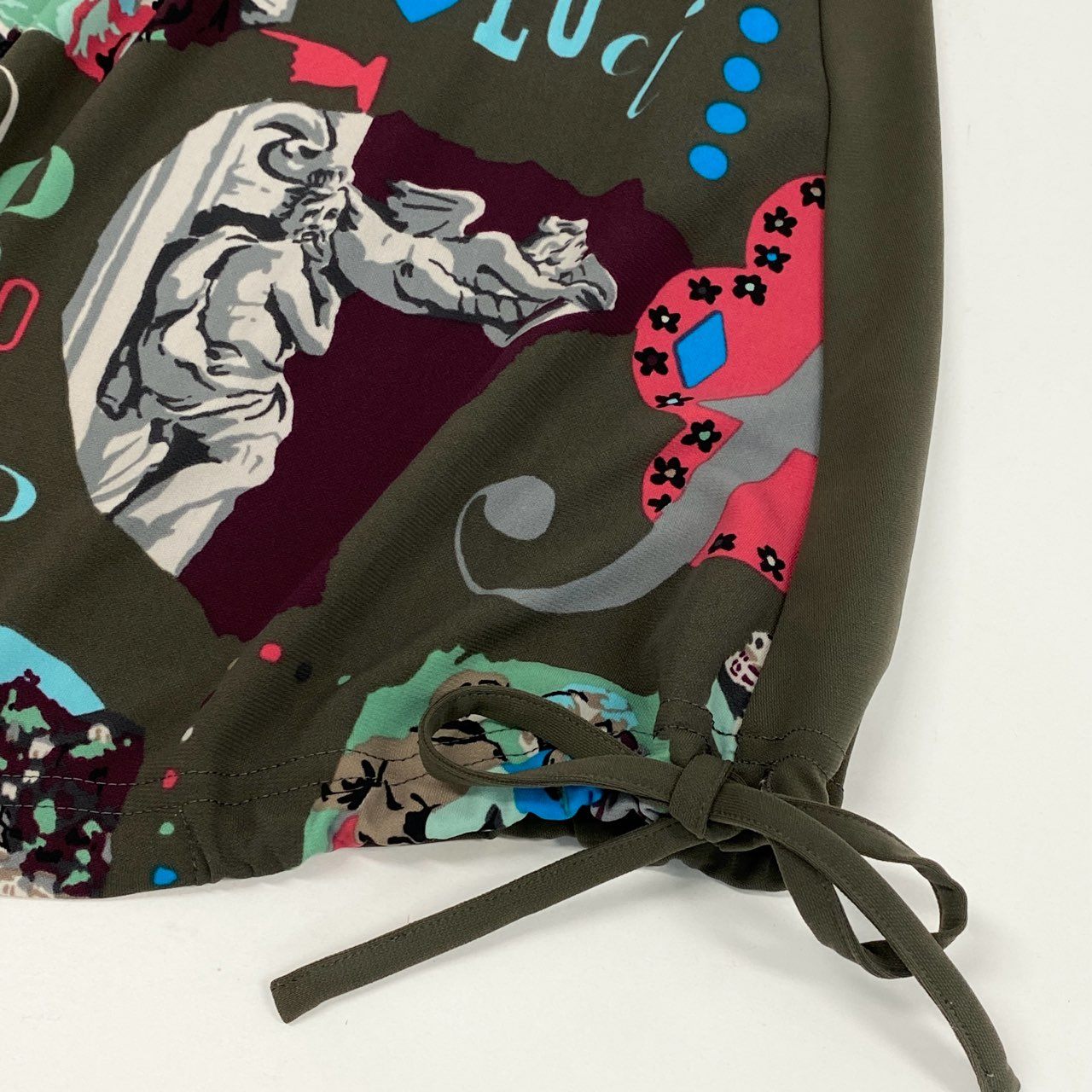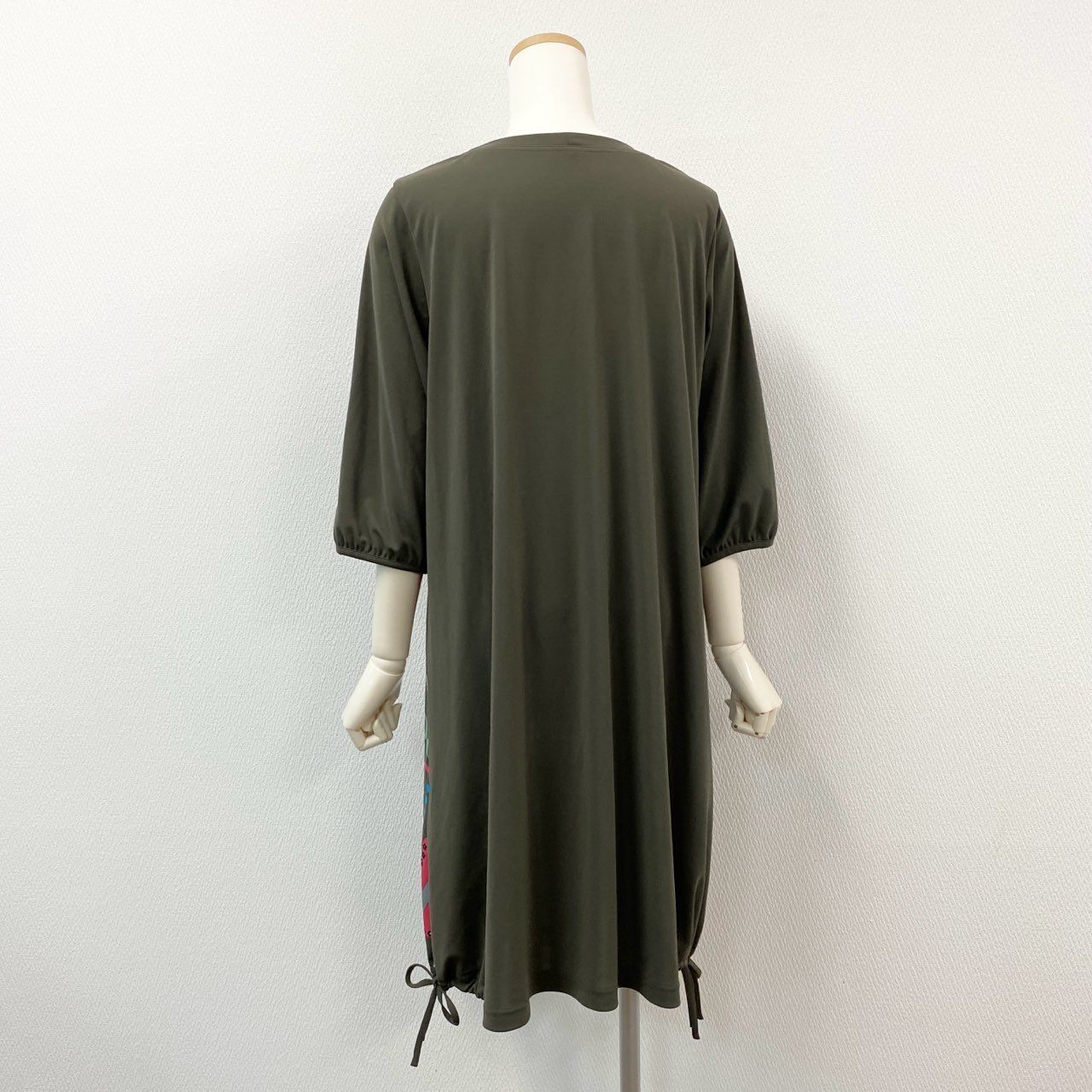 70i2 TOKUKO 1er Vol トクコプルミエヴォル 日本製 総柄プリント 七分袖チュニック ワンピース トップス 9 Mサイズ カーキ系 レディースo07t