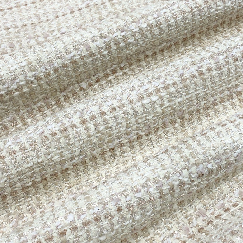 アイボリー系の柔らかな色味が上品なツイード素材のワンピースです。凹凸感のある織りに、ネックラインと袖口のフリンジ調ディテールが華やかな印象をプラス。背面ファスナー仕様で着脱しやすく、きちんと感のあるシルエットが特徴です。フォクシーらしいエレガントさがあり、式典・お食事会・セレモニーなどフォーマル寄りのシーンにもおすすめです。