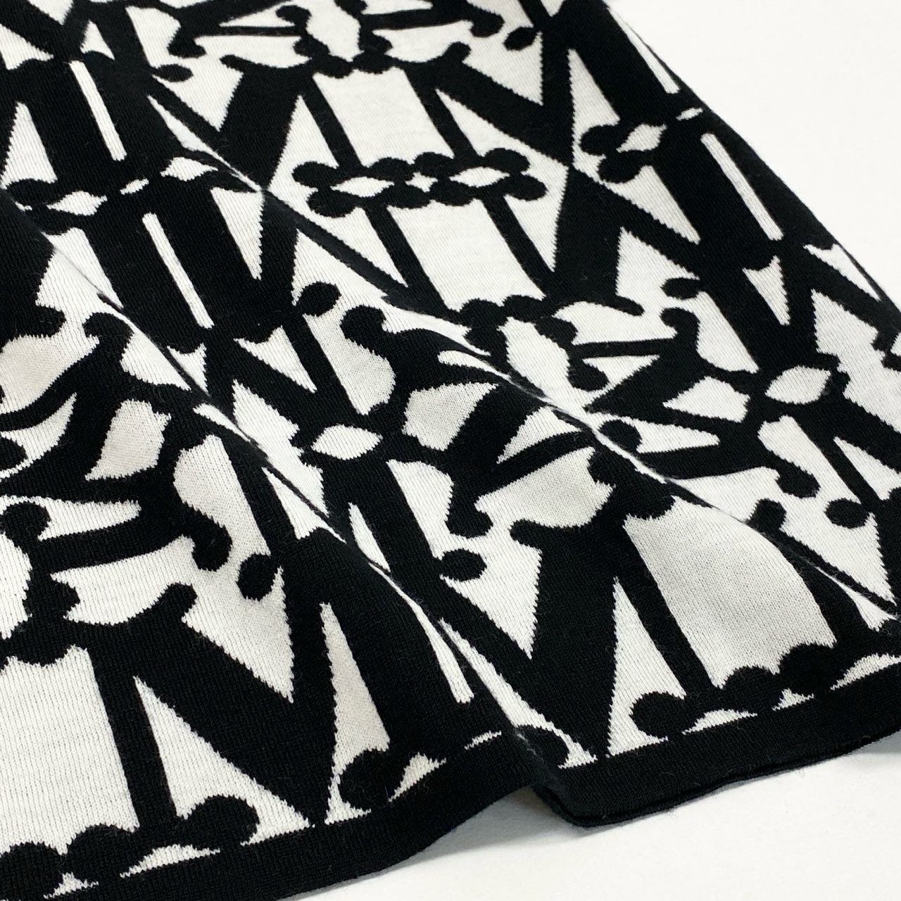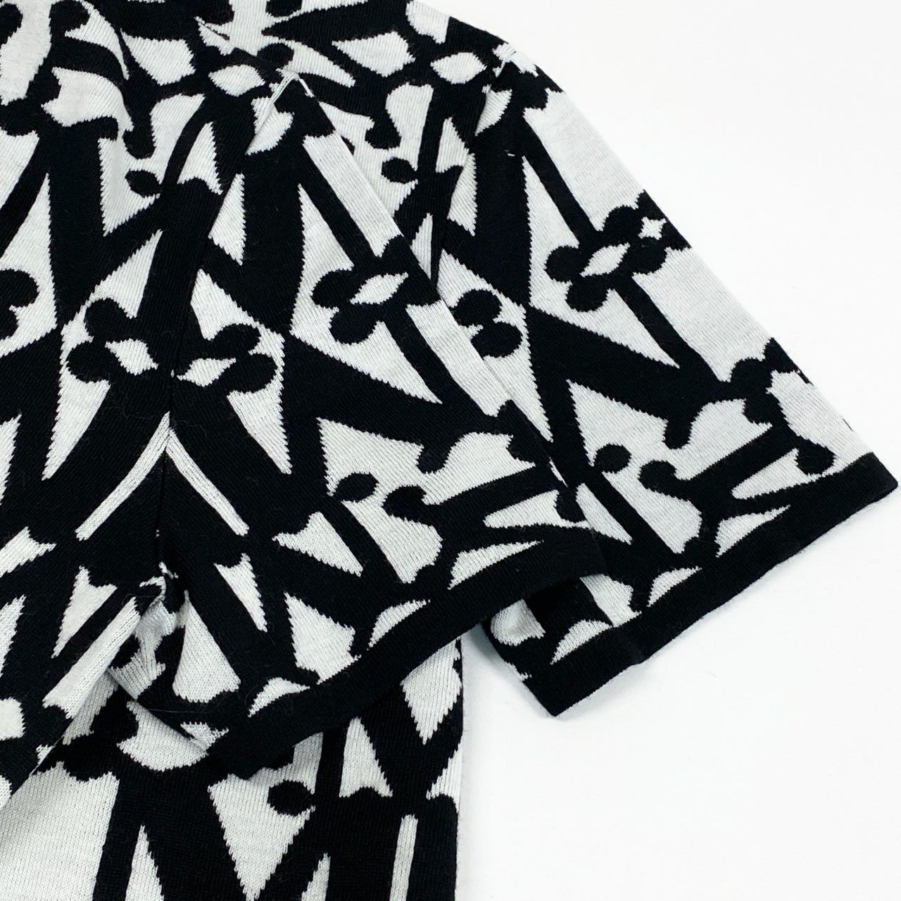 EL8【美品】MaxMara マックスマーラ 半袖ニット ニットセーター 総柄 幾何学模様 Sサイズ ブラック ホワイト ウール100% レディースk02i