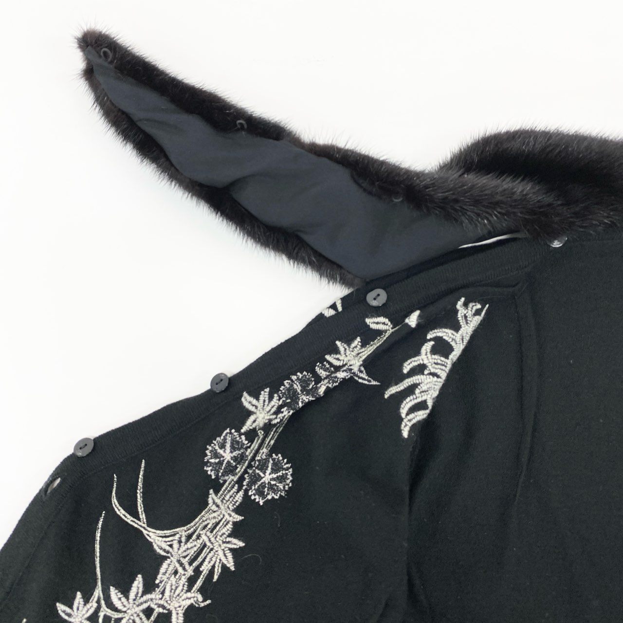 65j9 Blumarine ブルマリン ニットカーディガン ニットセーター 刺繍 ラインストーン レース ファー着脱可 ブラック レディースo07t