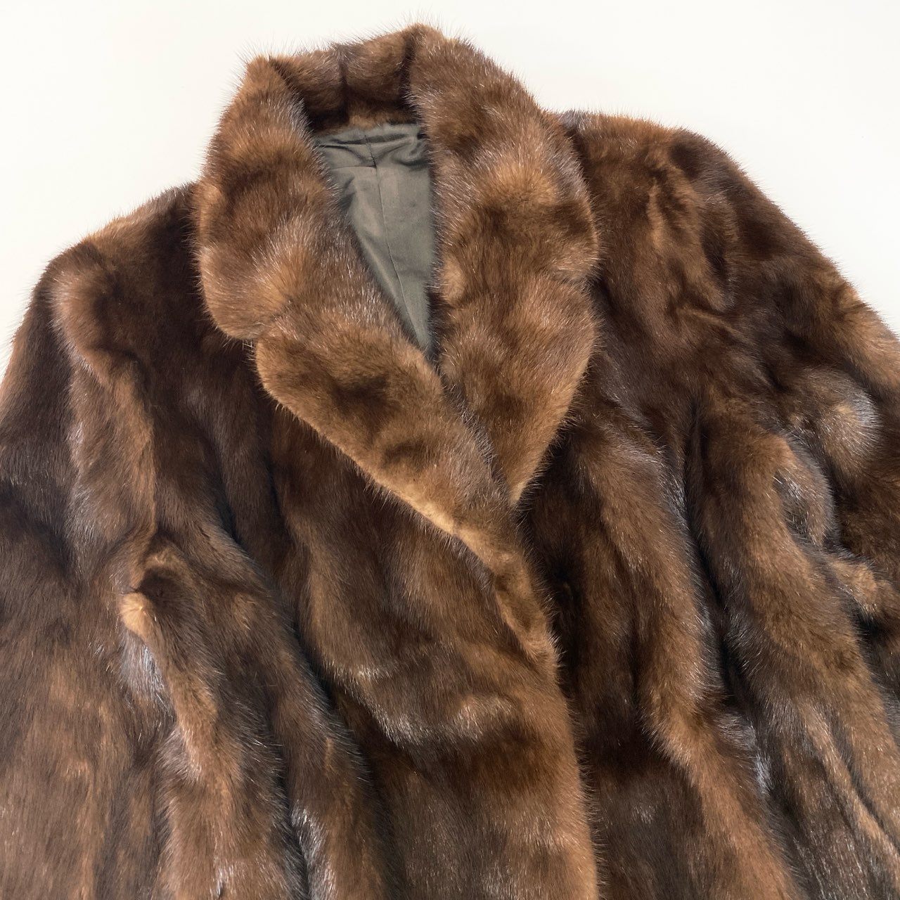 深みのあるダークブラウンカラーが美しい、パステルミンクを使用したラグジュアリーなファーコートです。 毛足の長い上質なミンクファーが滑らかな光沢を放ち、エレガントで高級感のある印象を演出します。 大きめのショールカラーとボリューム感のあるシルエットが、クラシックで上品なスタイルを引き立てます。 フォーマルシーンや冬のドレススタイルはもちろん、シンプルなコーディネートに羽織るだけで存在感のある一着です。
