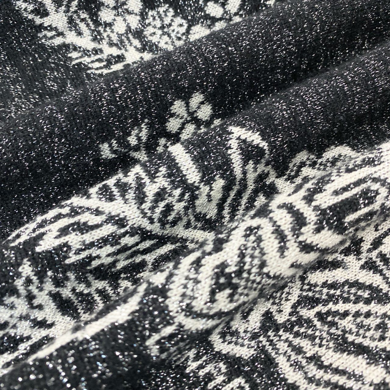 チャコール×ホワイトのラメ混ニットに、レオナールらしい繊細な花柄が映える華やかな一着です。程よく光沢のある素材と丸みのあるバルーン袖が、女性らしい立体感のあるシルエットを演出します。柔らかいウールブレンドで着心地も良く、1枚で主役になるデザイン。普段使いからお出かけスタイルまで幅広く活躍するアイテムです。