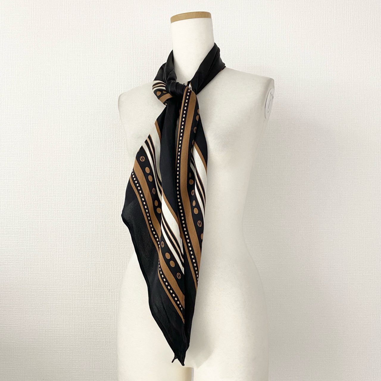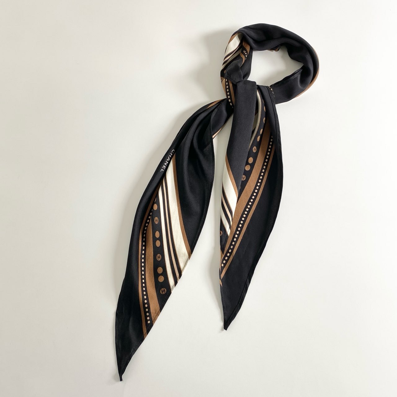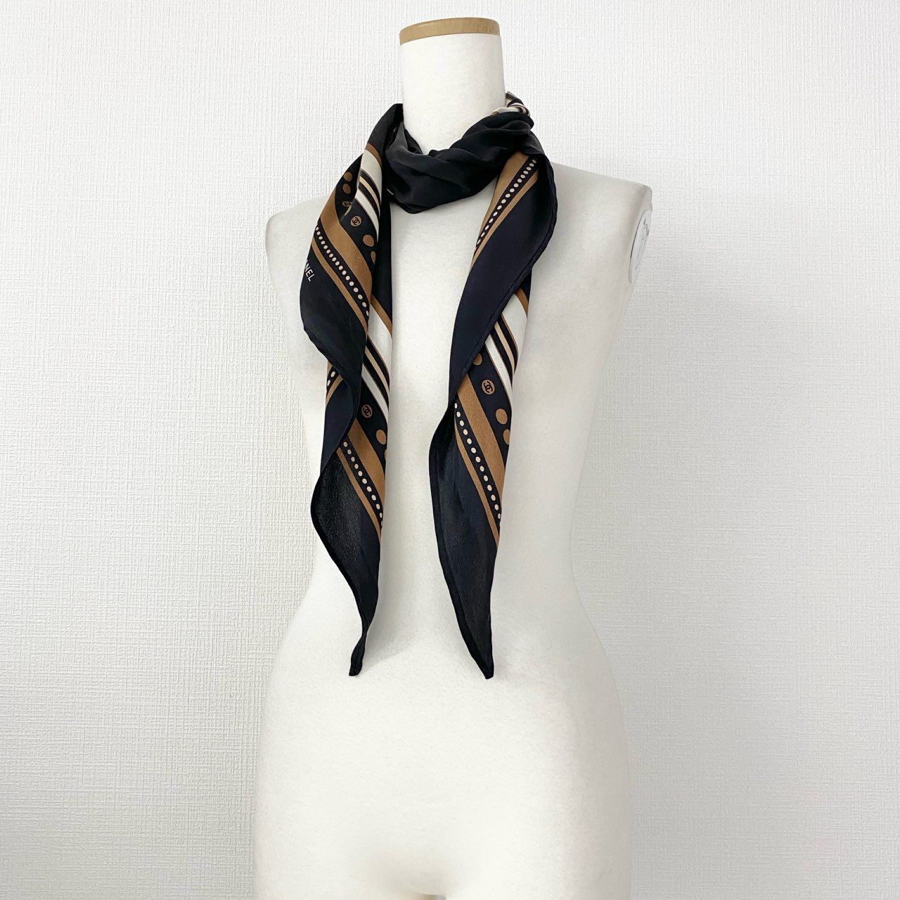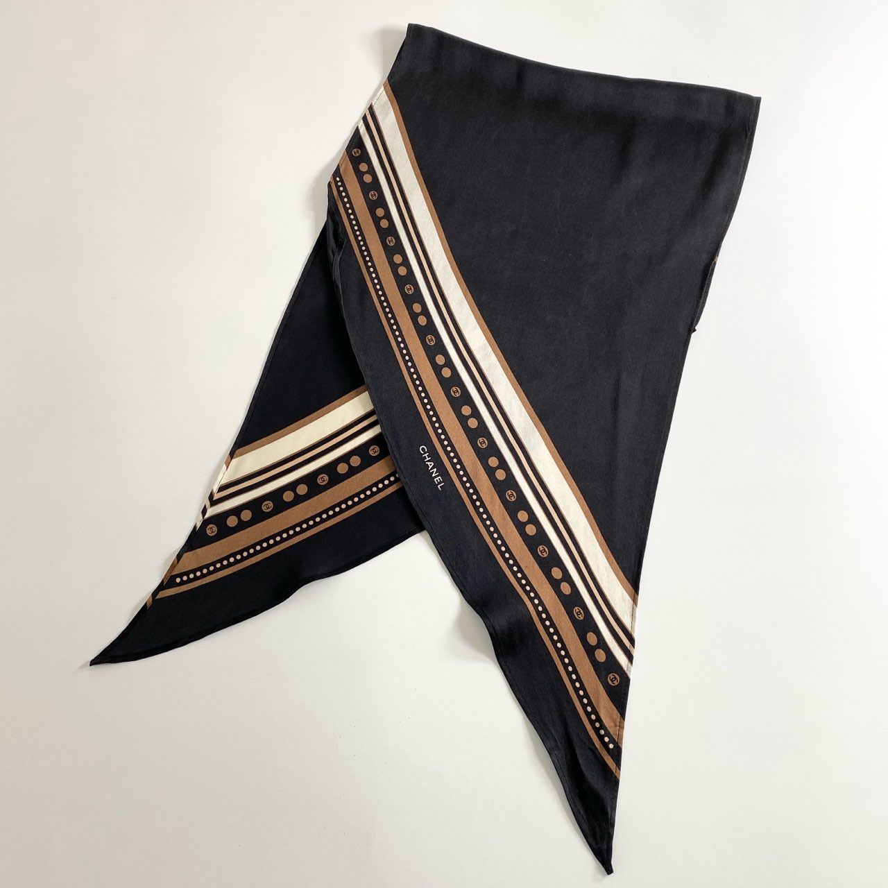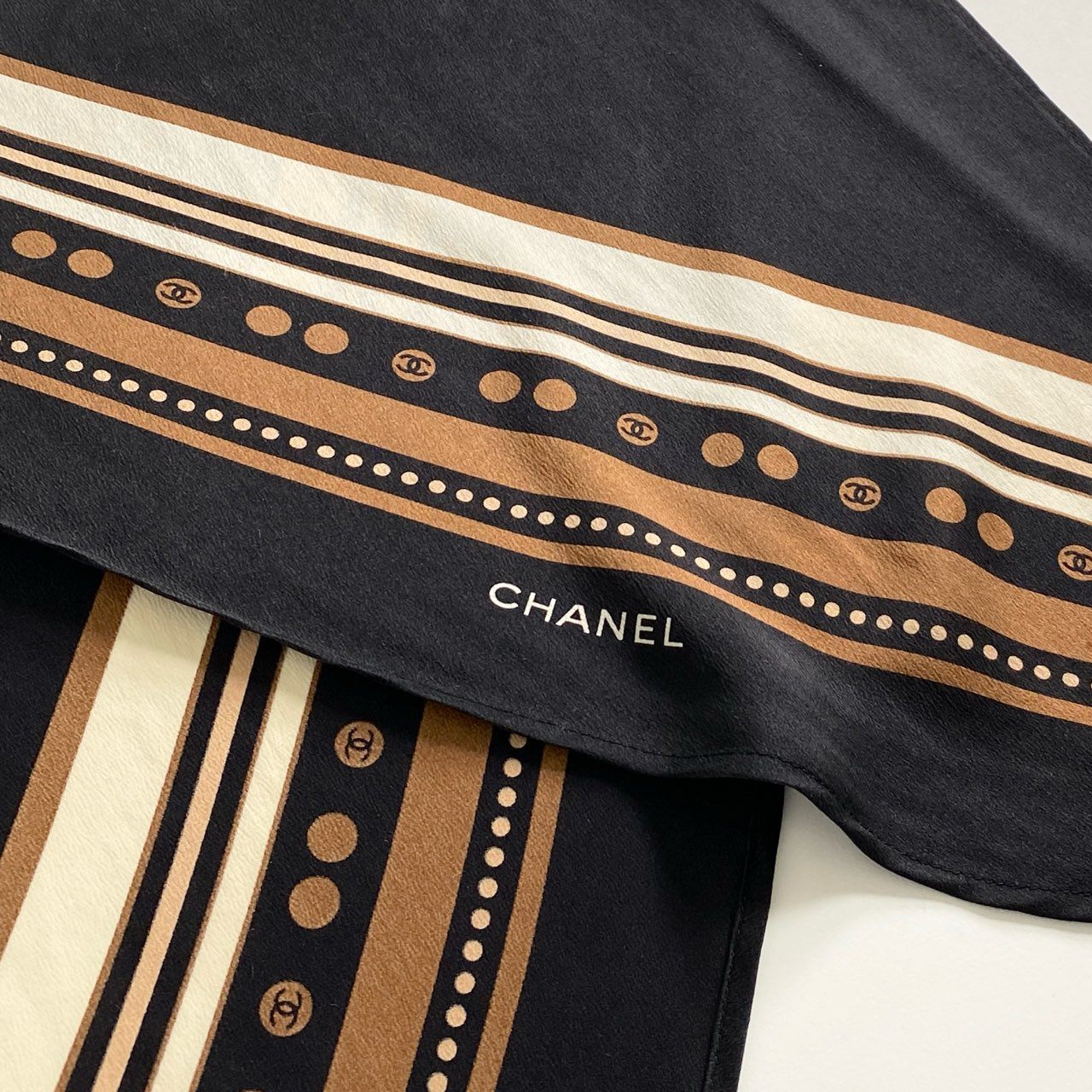 d12-5 CHANEL シャネル ココマーク シルク ストール ショール ブラック SILK100% イタリア製