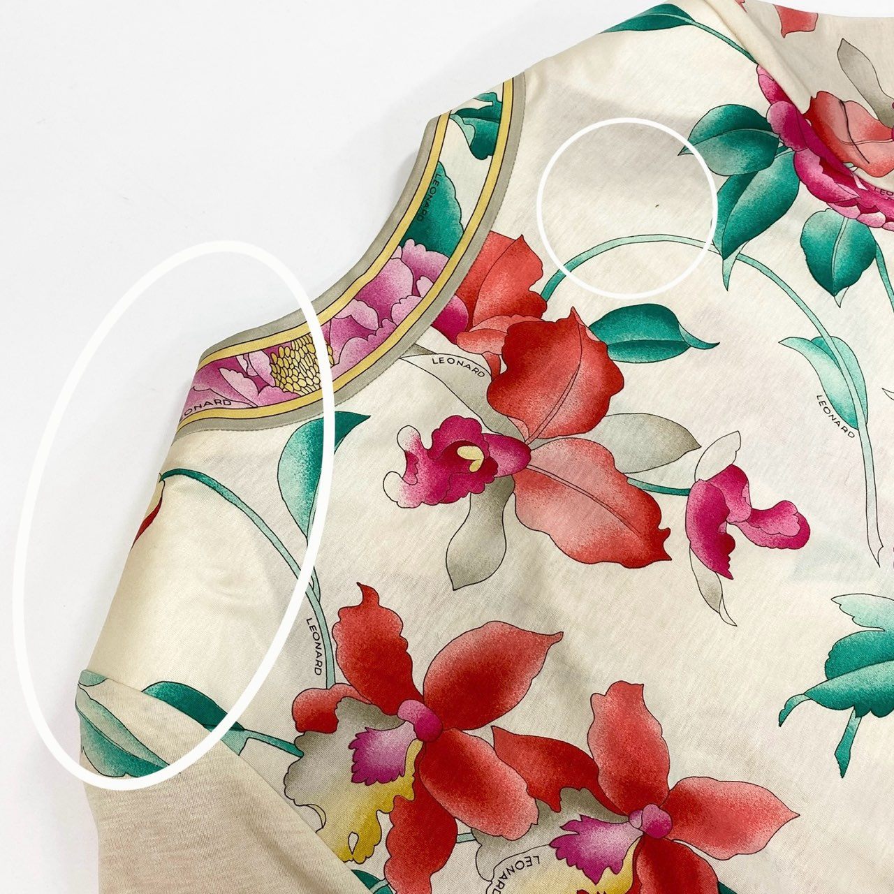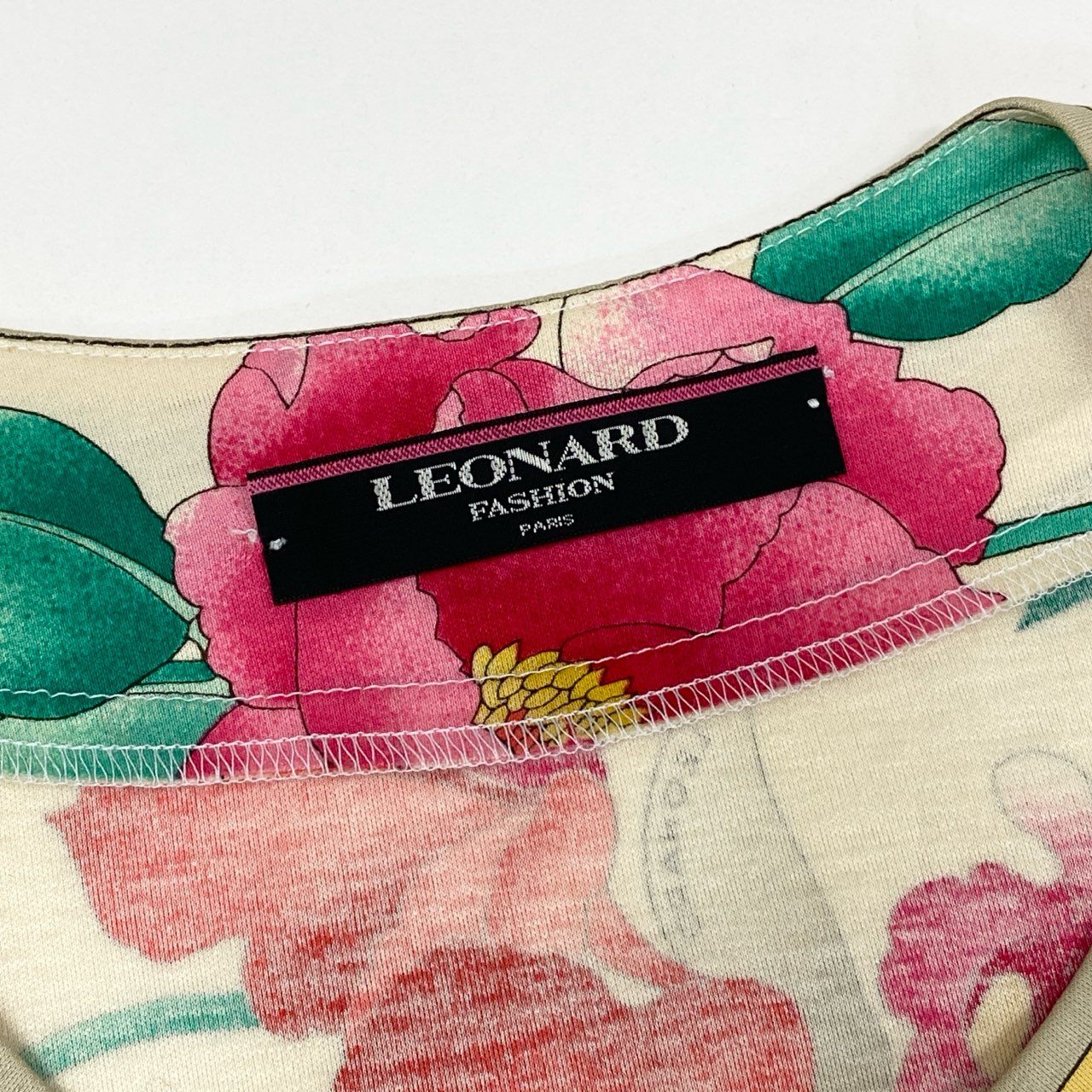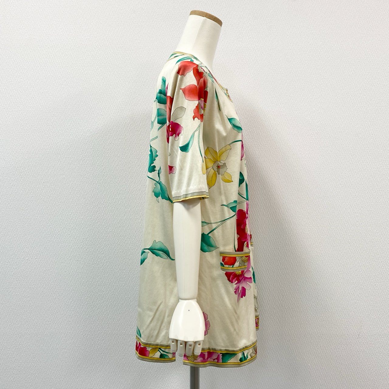 76i12 LEONARD レオナール 美しい花柄プリント 半袖チュニック ブラウス カットソー トップス L マルチカラー コットン レディースu02t