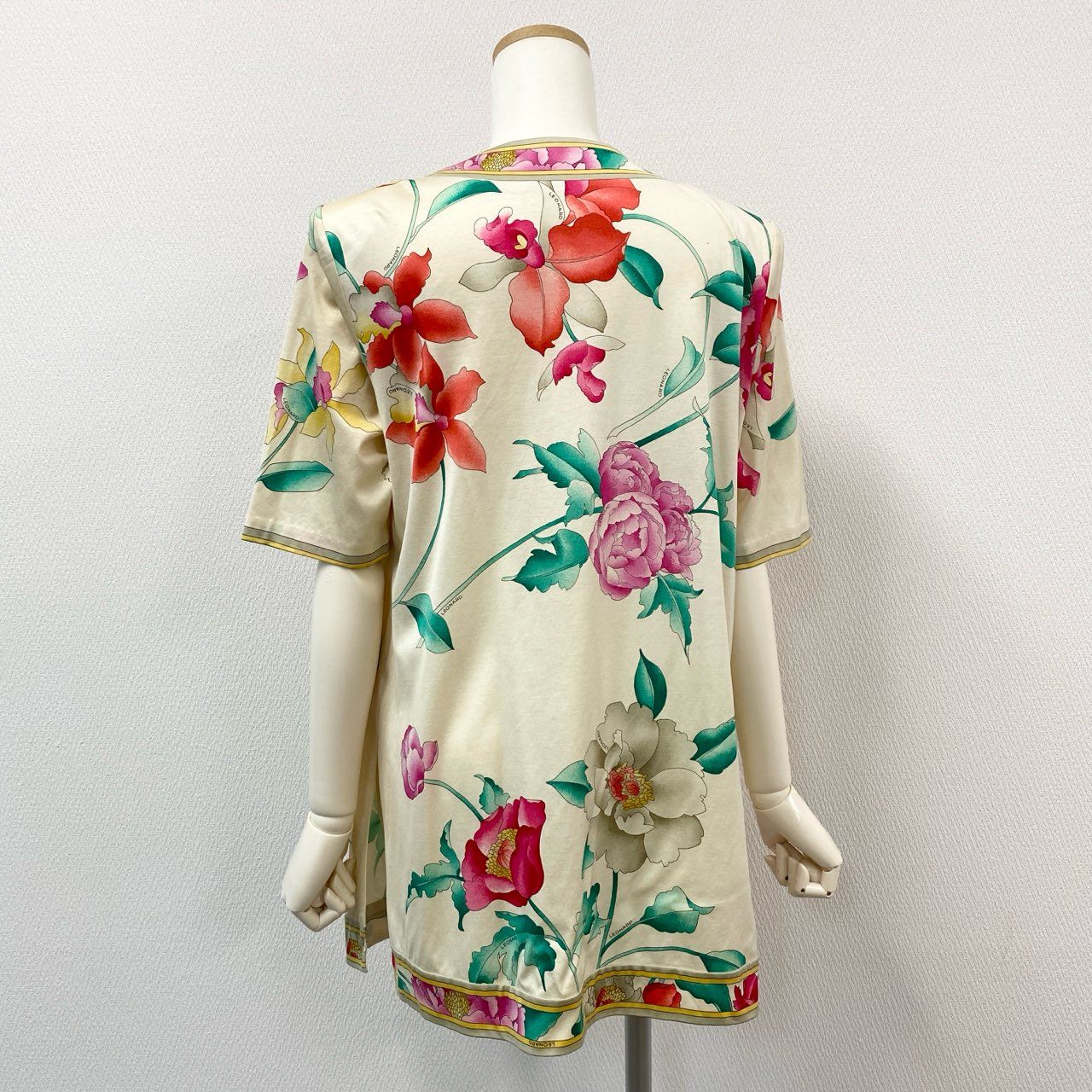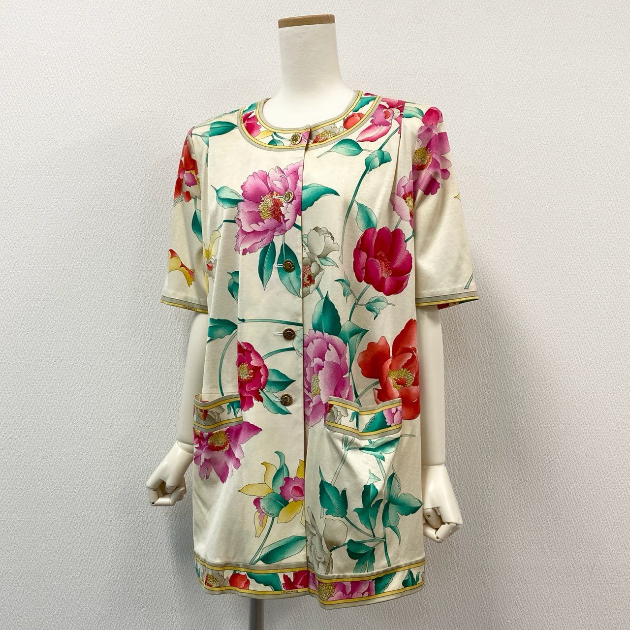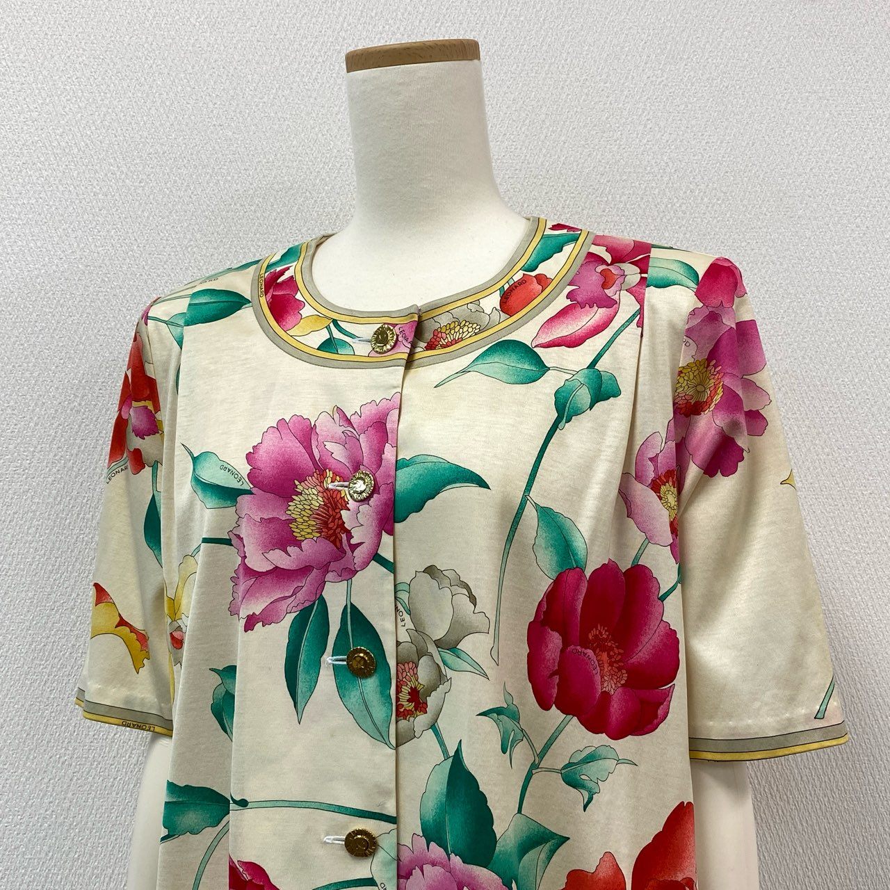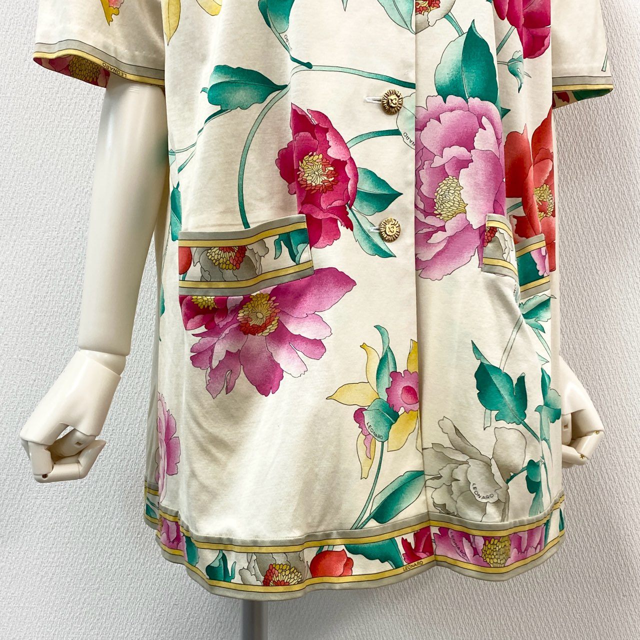 76i12 LEONARD レオナール 美しい花柄プリント 半袖チュニック ブラウス カットソー トップス L マルチカラー コットン レディースu02t