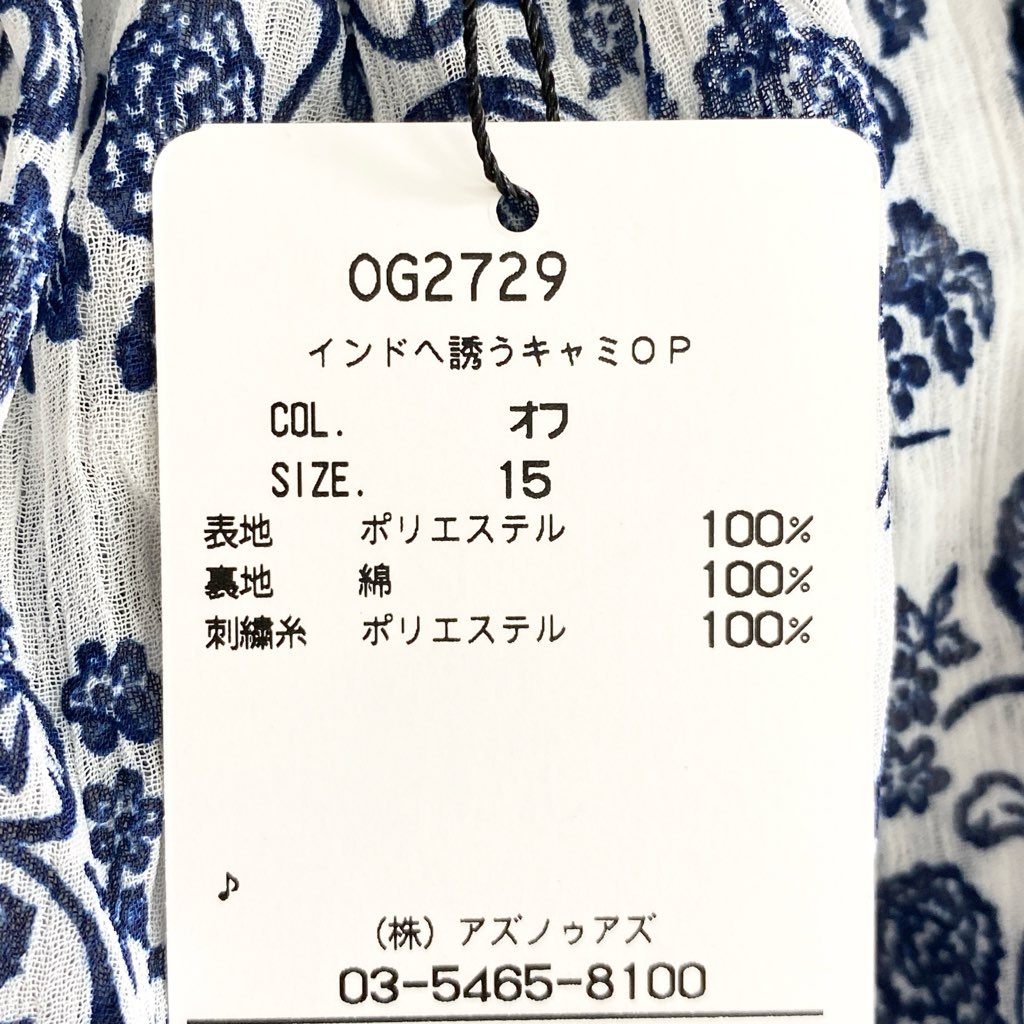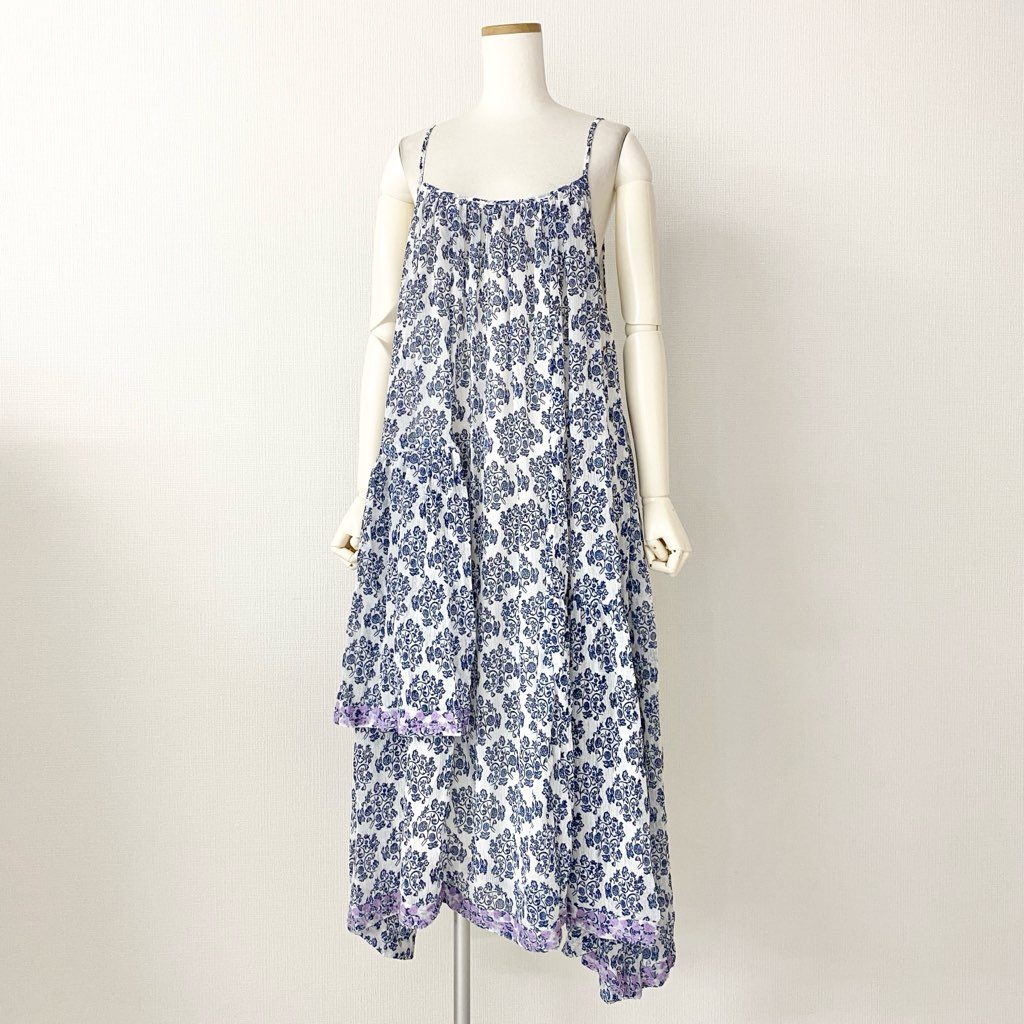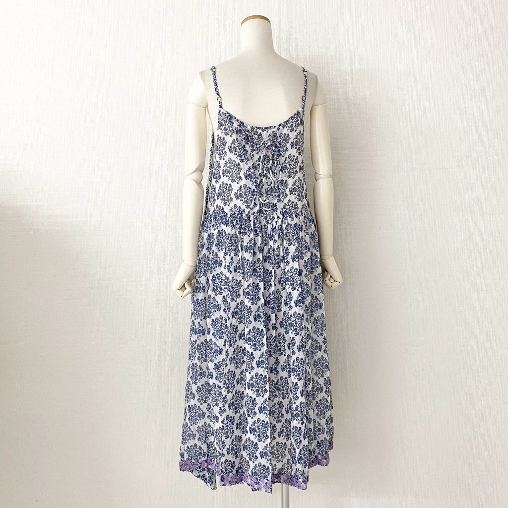 5e24-1 《未使用》 AS KNOW AS olaca アズノウアズ オオラカ インドへ誘うキャミワンピース 膝丈ワンピース サイズ15 ホワイト×ブルー レディース