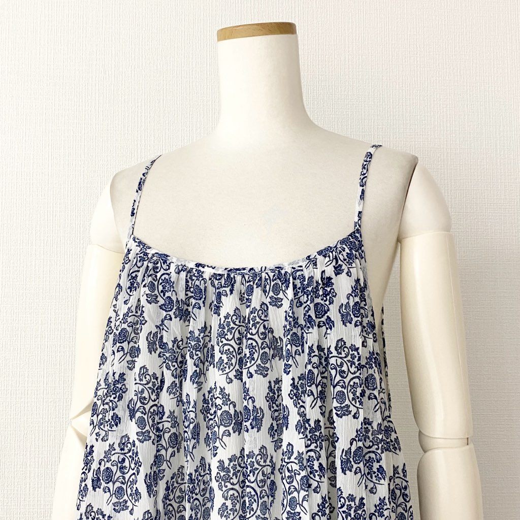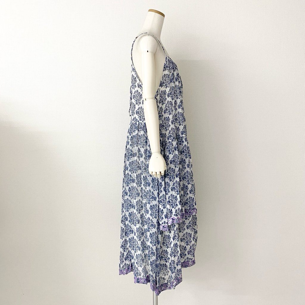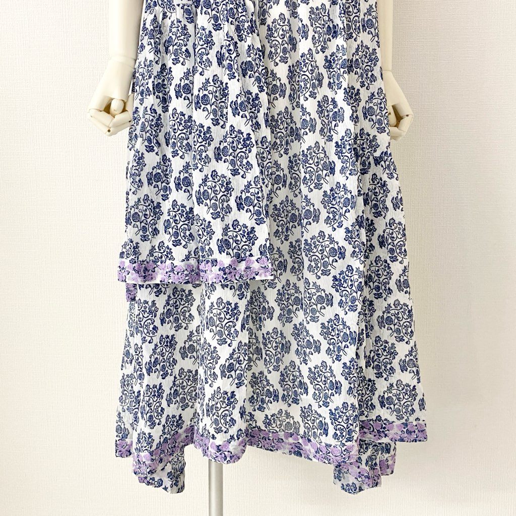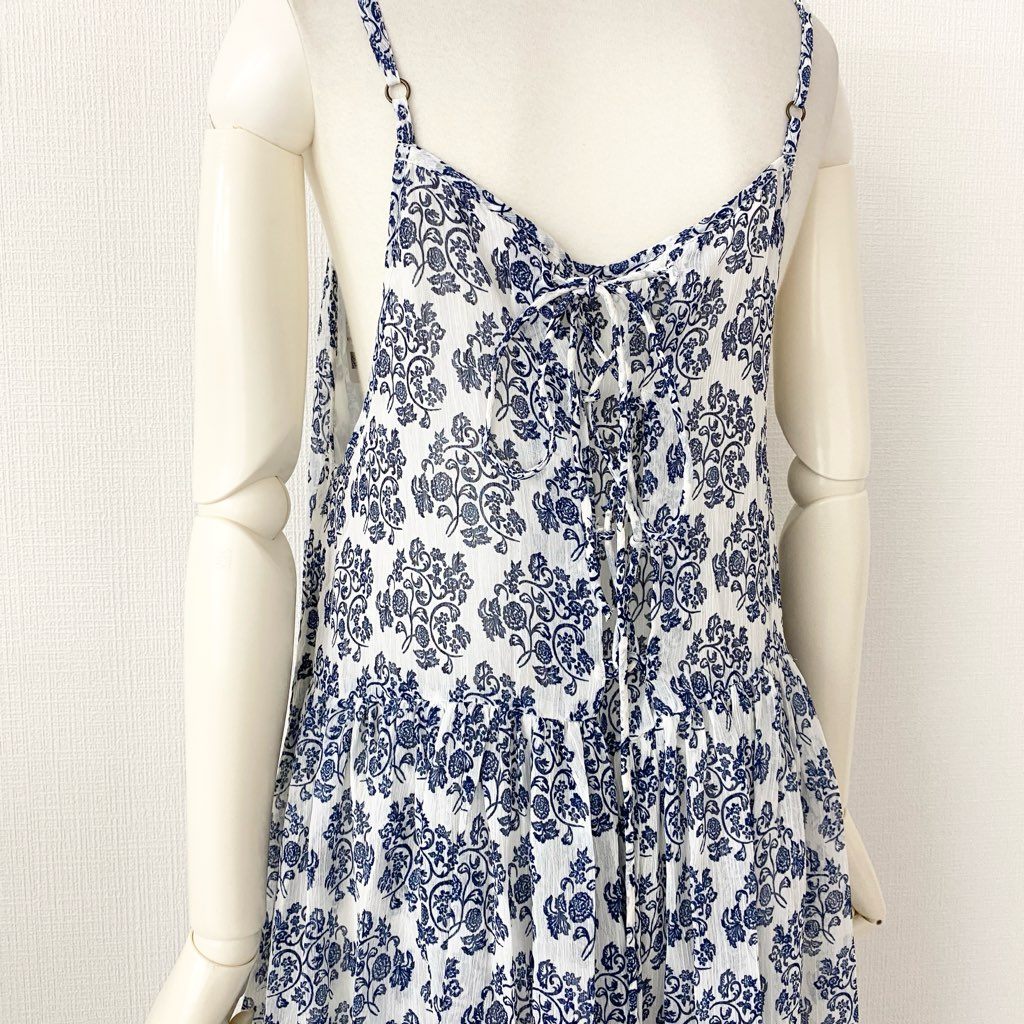 5e24-1 《未使用》 AS KNOW AS olaca アズノウアズ オオラカ インドへ誘うキャミワンピース 膝丈ワンピース サイズ15 ホワイト×ブルー レディース