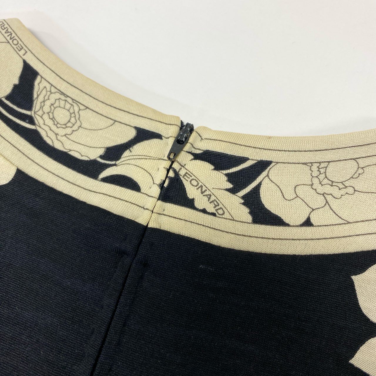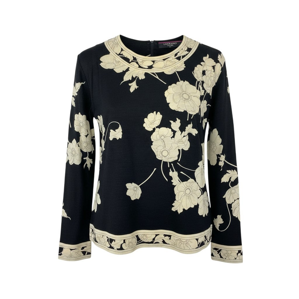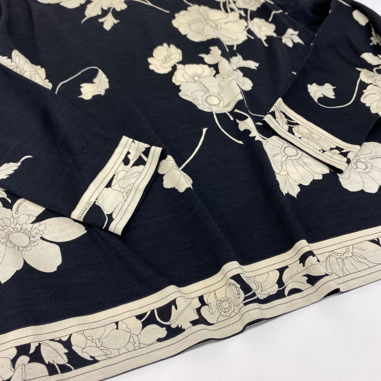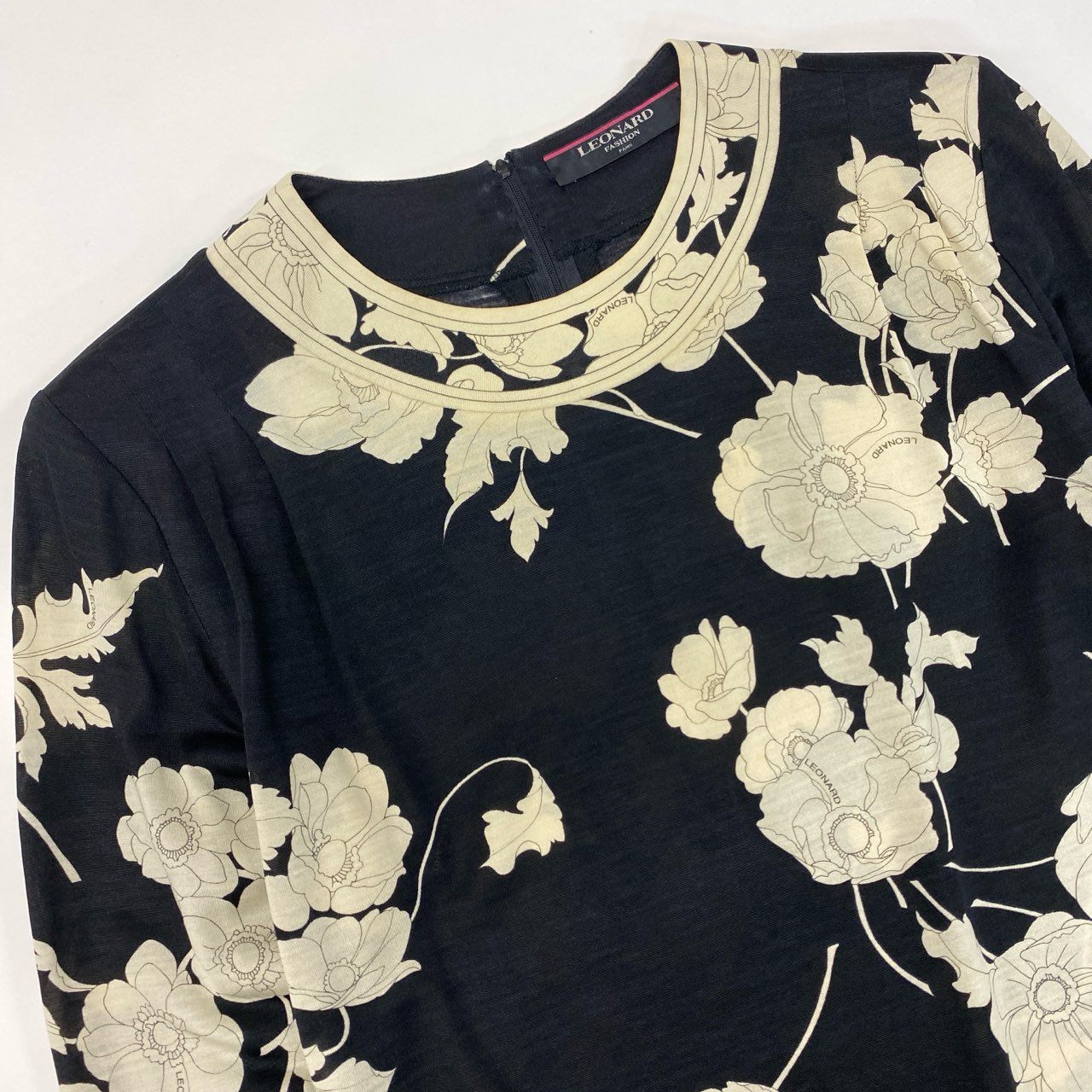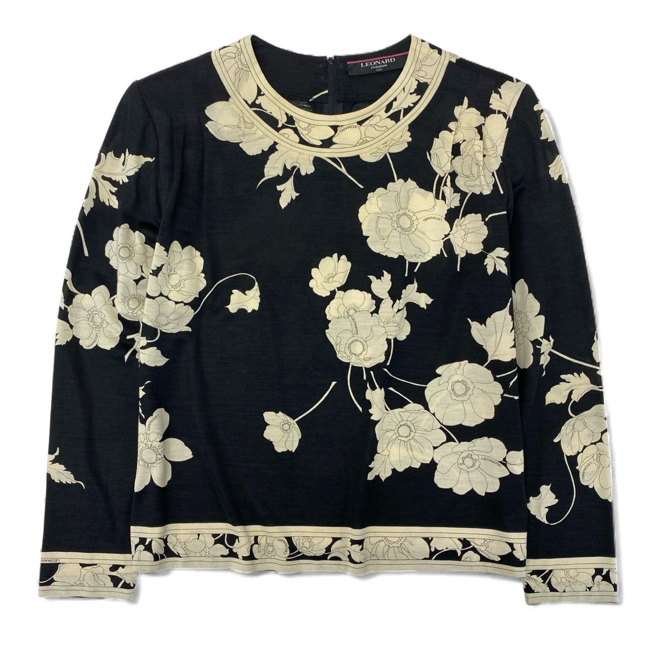 19k10 LEONARD レオナール 長袖カットソー クルーネック 花柄 0389991 Mサイズ ブラック アイボリー レディースu02t
