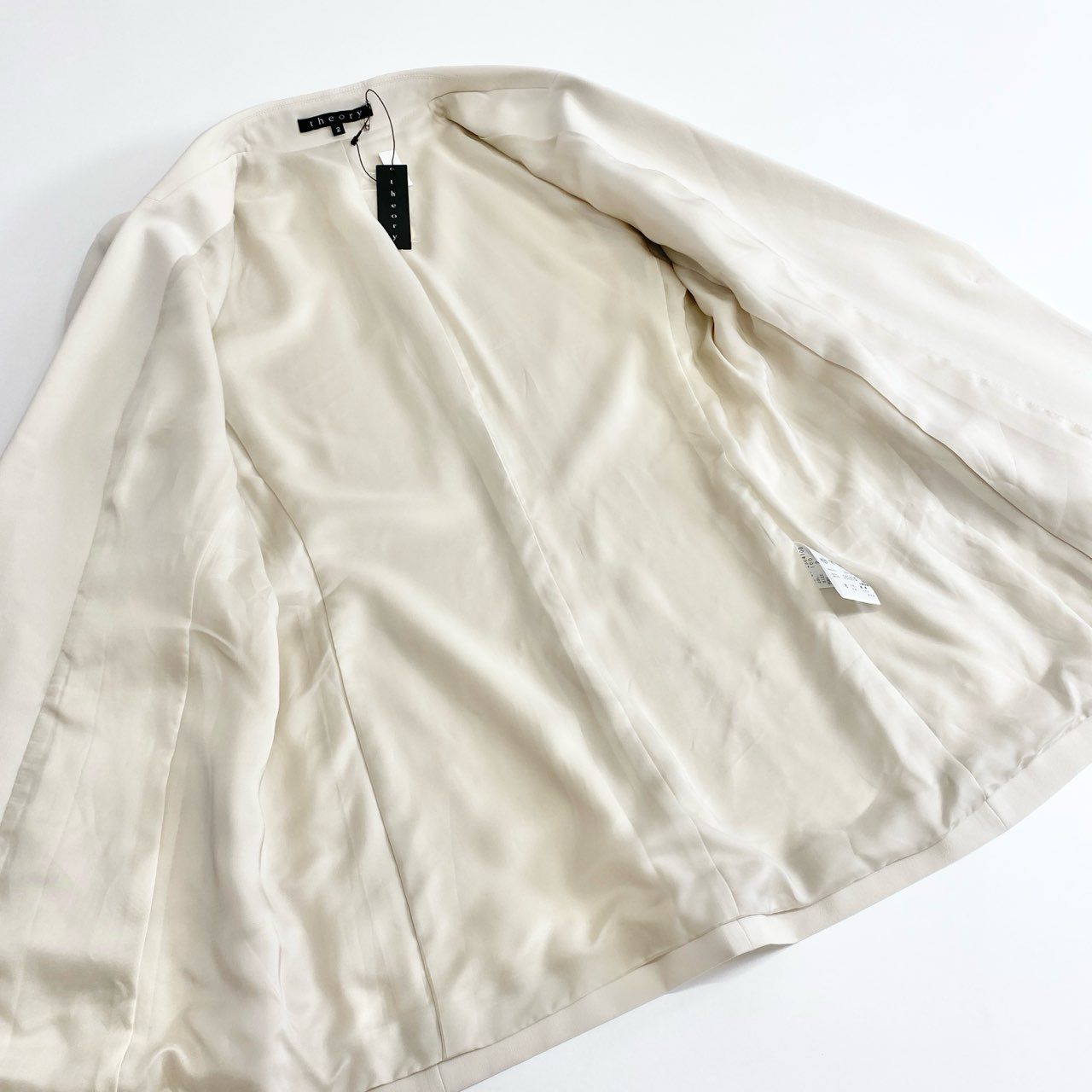 2f14 【未使用タグ付き】Theory セオリー リラックス素材 ロールアップ仕様 テーラードジャケット サイズ2 ライトベージュ レディース 女性用 フォーマル