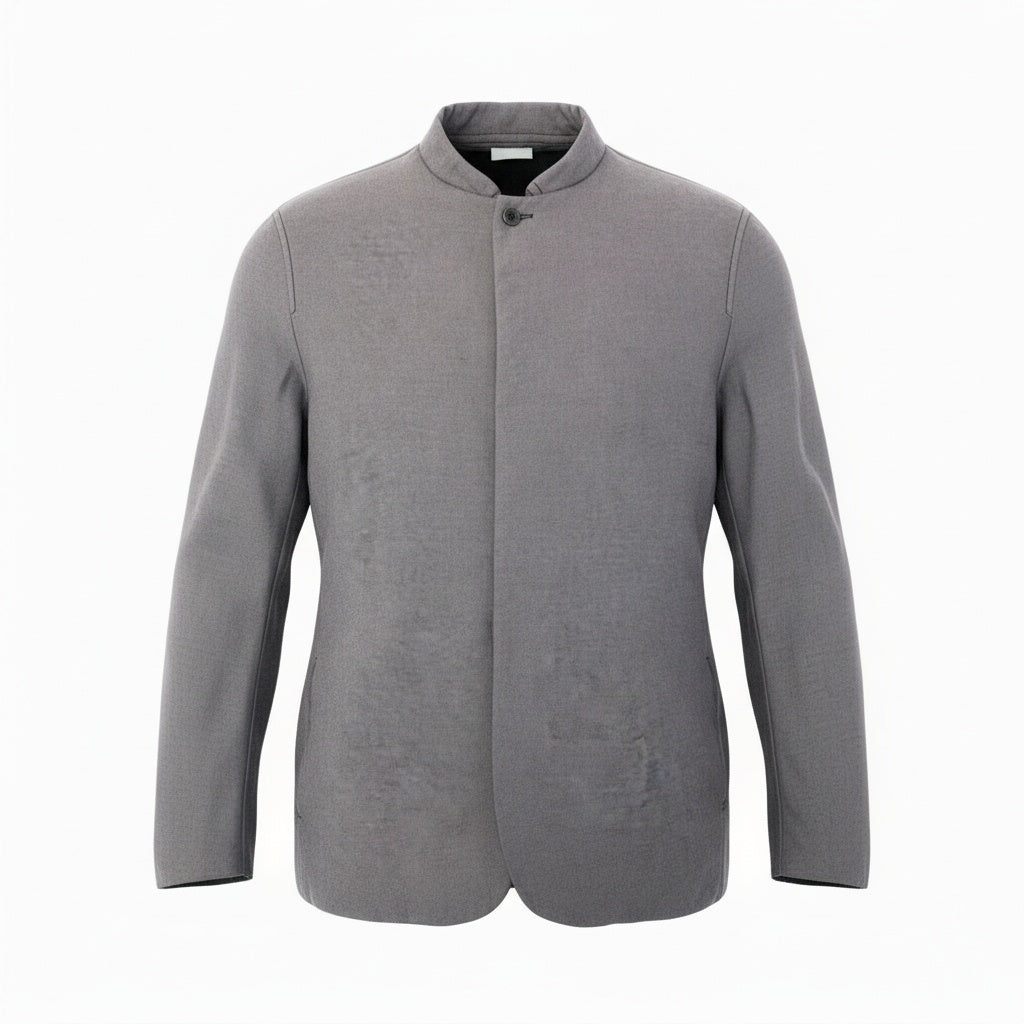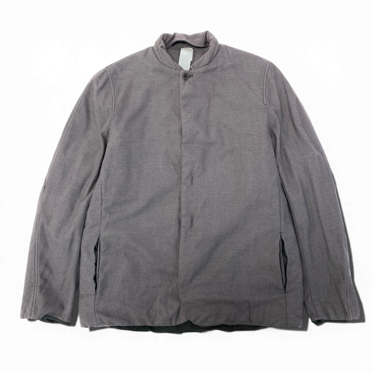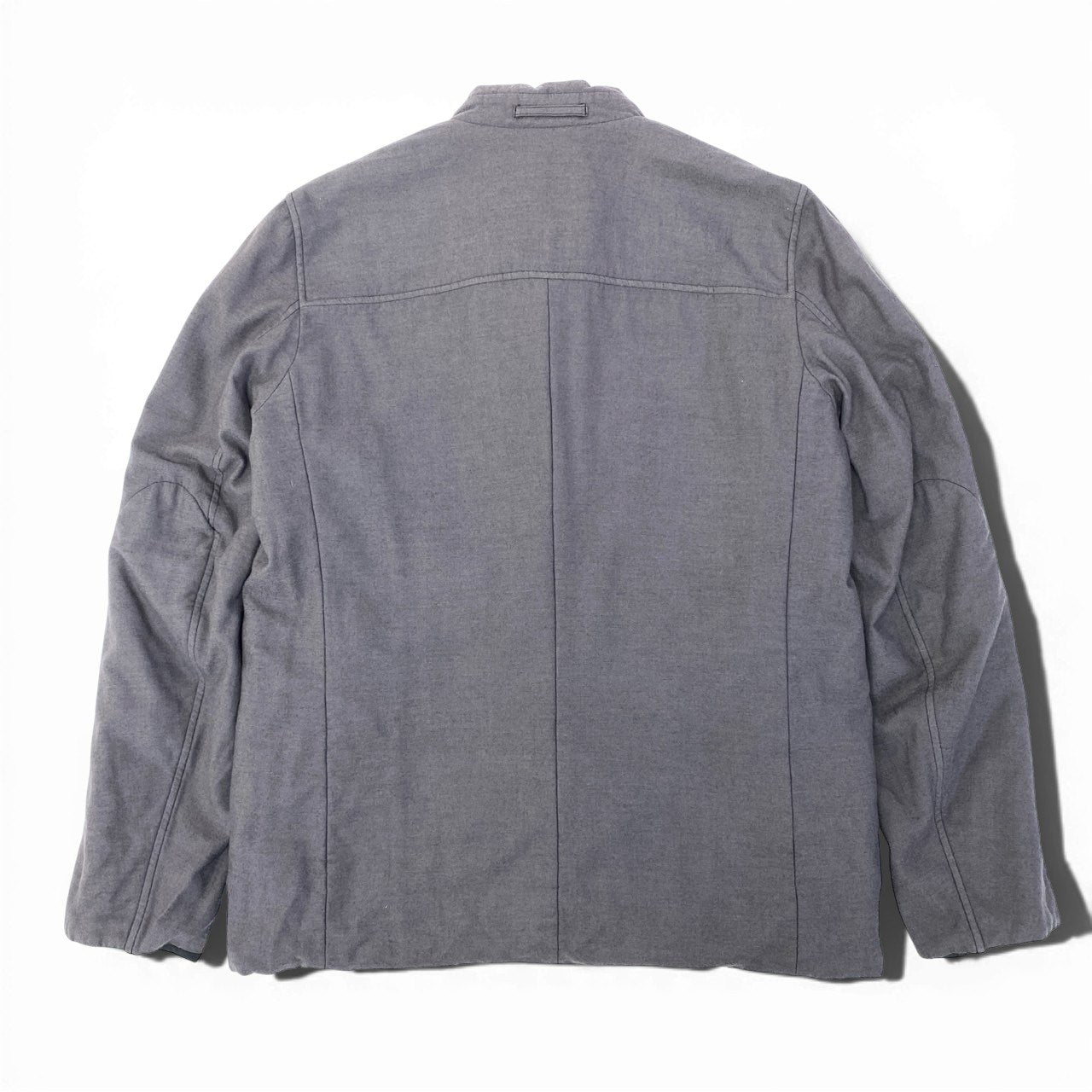 落ち着いたミディアムグレーの単色デザインが特徴的な、2000年アーカイブのウールジャケットです。マットな質感のウール素材にカシミヤ混ならではの柔らかさが加わり、上品で大人らしい雰囲気に仕上がっています。スタンドカラー風の首元や比翼仕様のフロントがミニマルな印象を演出。パンツを選ばず合わせやすく、通勤から休日のきれいめスタイルまで幅広く活躍する一着です。