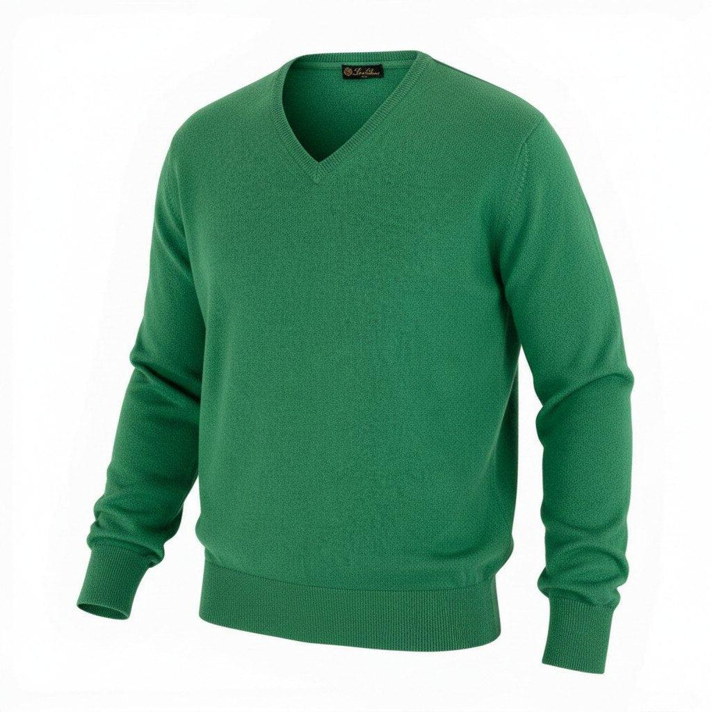 ロロ・ピアーナの最高品質が堪能できる、カシミヤ100%のVネックニットです。カラーは発色の美しいグリーンで、無地デザインと滑らかな編み地が素材の良さを際立たせます。極上カシミヤならではの軽さと柔らかさで、肌触りは非常に上品。シャツに重ねたきれいめスタイルから、単体でのラグジュアリーカジュアルまで幅広く活躍する大人向けの一着です。