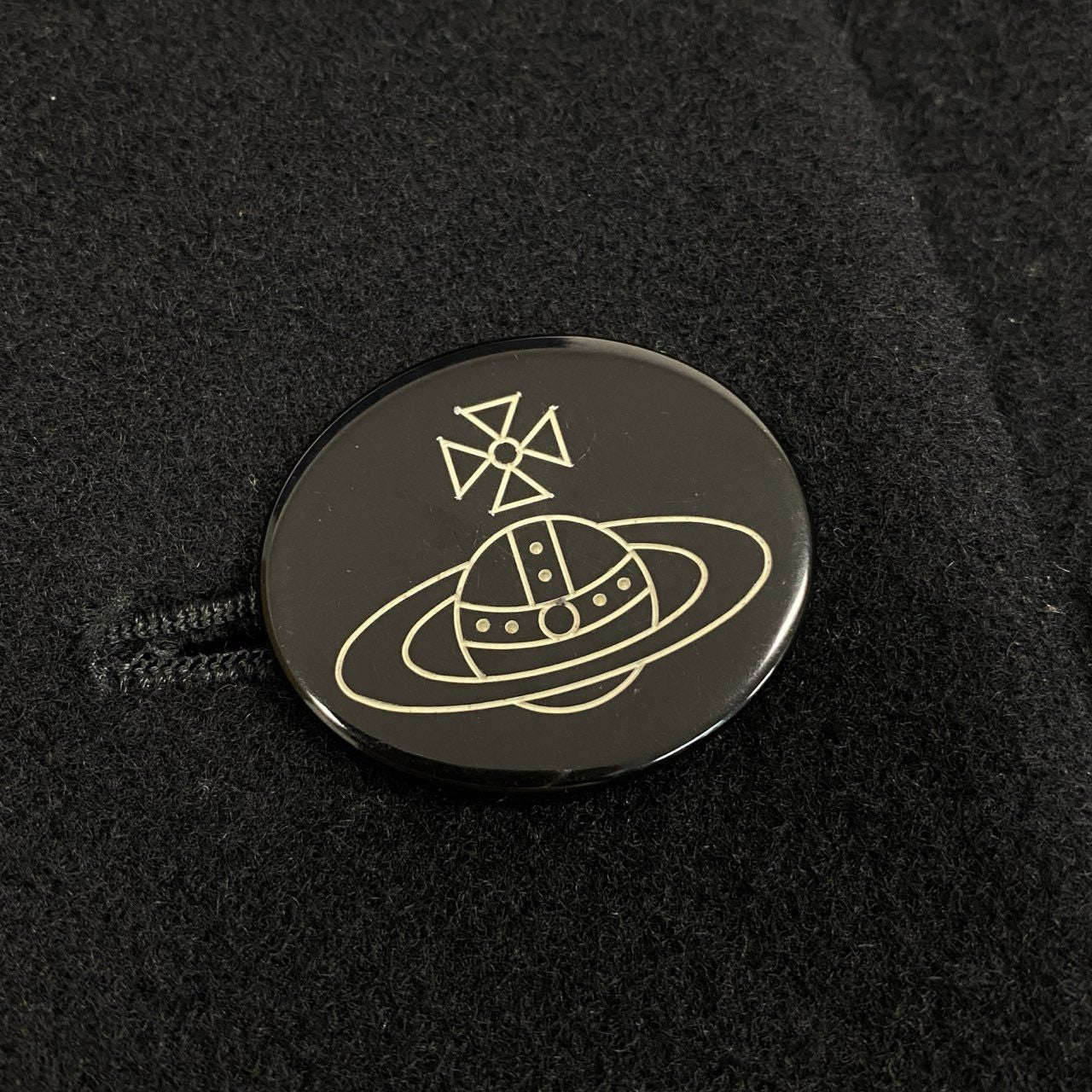 深みのあるブラックカラーが印象的な、Vivienne Westwood RED LABELの変形Pコートです。マットで目の詰まったウール素材を使用し、丸みのあるシルエットとオーブロゴ入りメタルボタンがブランドらしいアクセント。ショート丈ながら身幅にボリュームがあり、存在感のあるデザインです。カジュアルからモードスタイルまで、秋冬の主役アウターとして活躍する一着です。