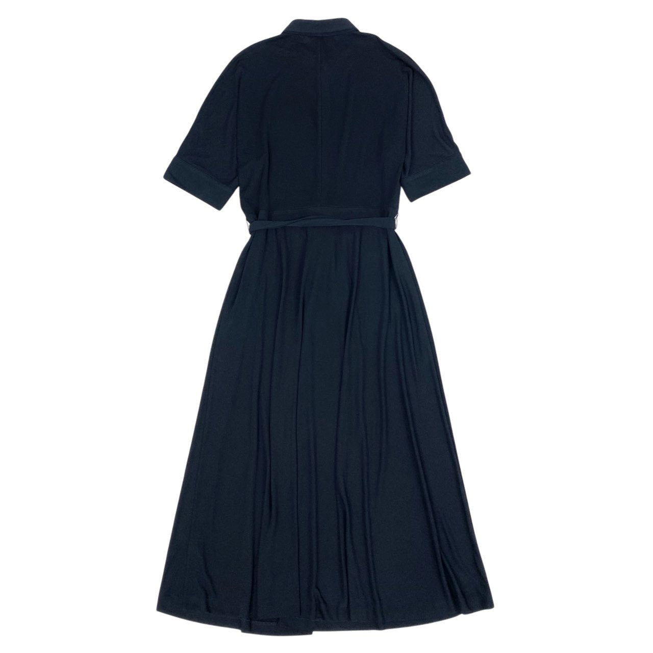 深みのあるミッドナイトネイビーの無地デザインで、上品で洗練された印象のワンピースです。 マットで落ち感のある素材が、美しいフレアシルエットを演出します。 フロントのホワイトボタンと共布ベルトがアクセントとなり、メリハリのあるスタイルに。 シャツカラー仕様できちんと感もあり、デイリーからオケージョンまで幅広く活躍。 一枚で完成度の高いスタイリングが叶う、大人のためのエレガントなマキシワンピースです。