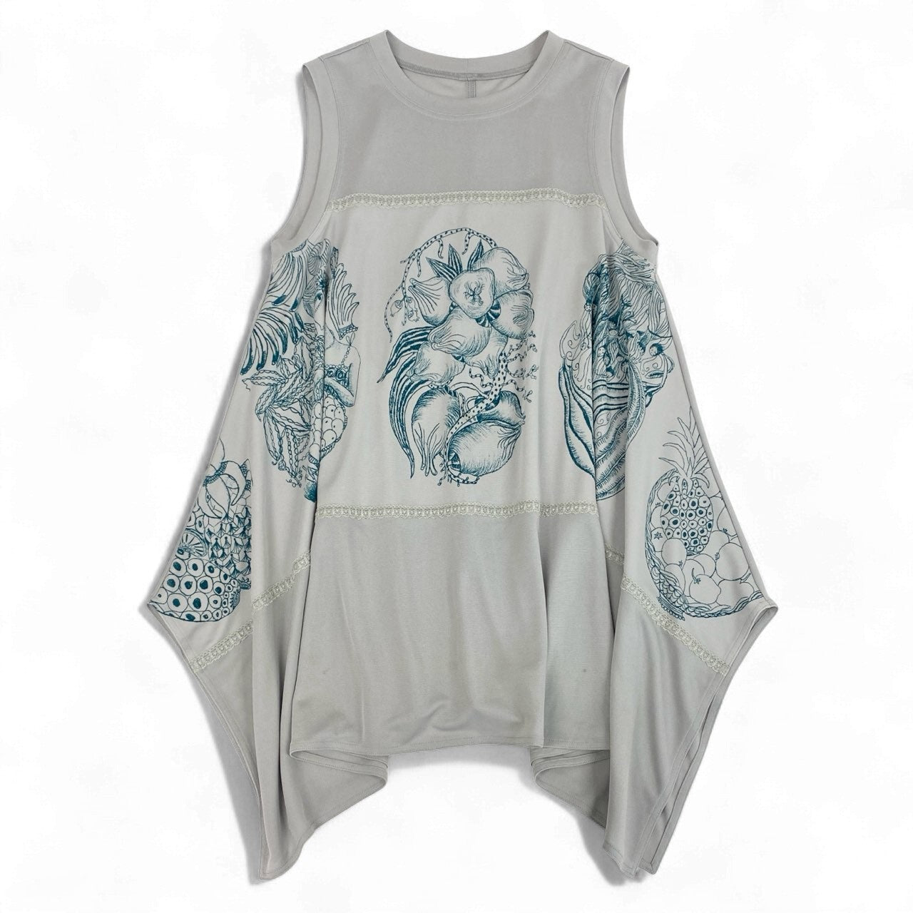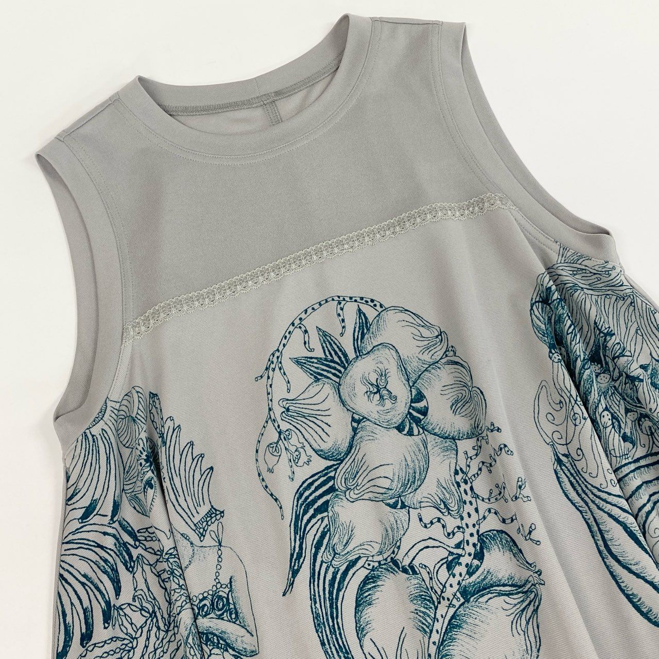 45k26 《美品》 TOKUKO 1er VOL トクコプルミエヴォル ノースリーブワンピース フレアワンピース イラストプリント○ レディース 女性用 9 グレーu02t