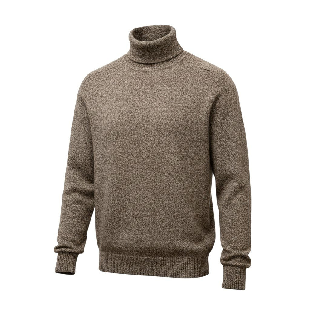 落ち着いたブラウン系(メランジ調)の色味が上品な、GOBIのカシミヤハイネックニットです。 マットで滑らかなカシミヤ素材ならではの柔らかさと保温性が魅力です。 シンプルな無地デザインに、首元を包むハイネックが季節感を演出します。 ジャケットのインナーから単体使いまで幅広く活躍し、秋冬のデイリーコーデに重宝する一着です。