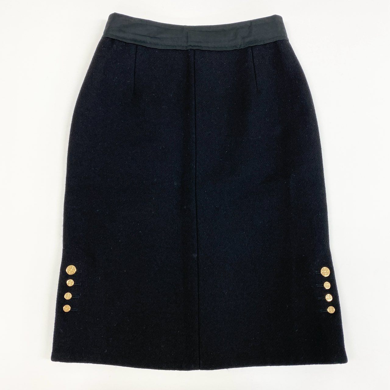 46j3 LOUIS VUITTON ルイヴィトン フランス製 金ボタン 膝丈 スカート ボトムス ロゴボタン 36 ブラック ウール レディースo07t