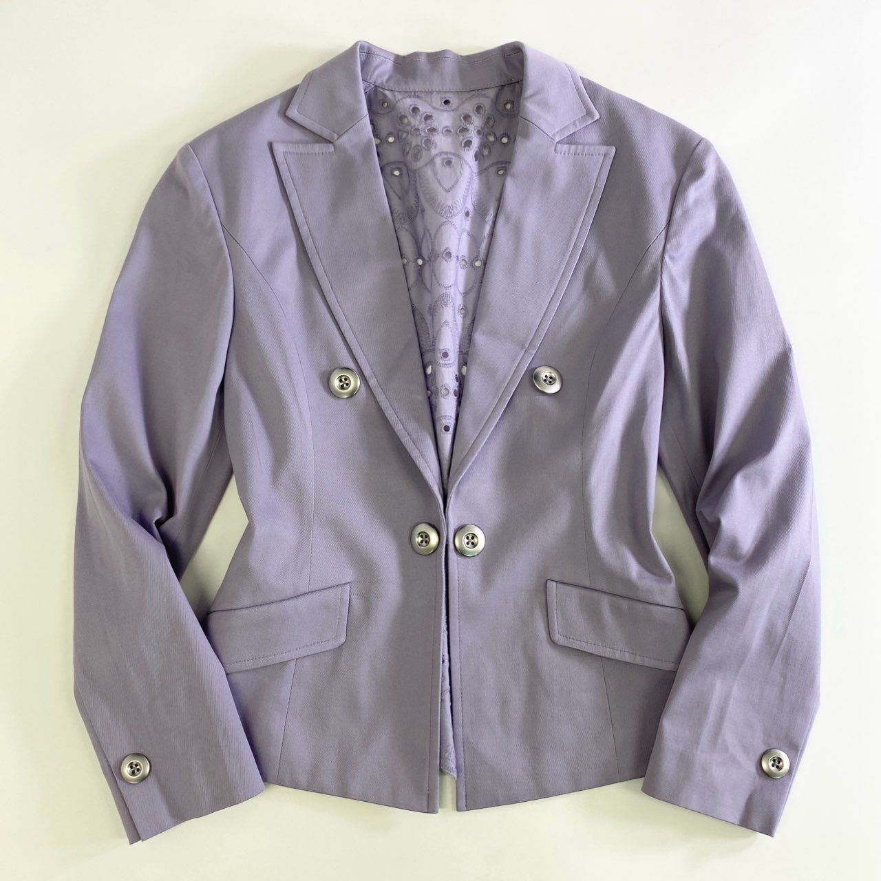 15j16 《美品》 TAE ASHIDA タエアシダ 日本製 レース切替 テーラードジャケット ブレザー 羽織 TJ3610 7 パープル