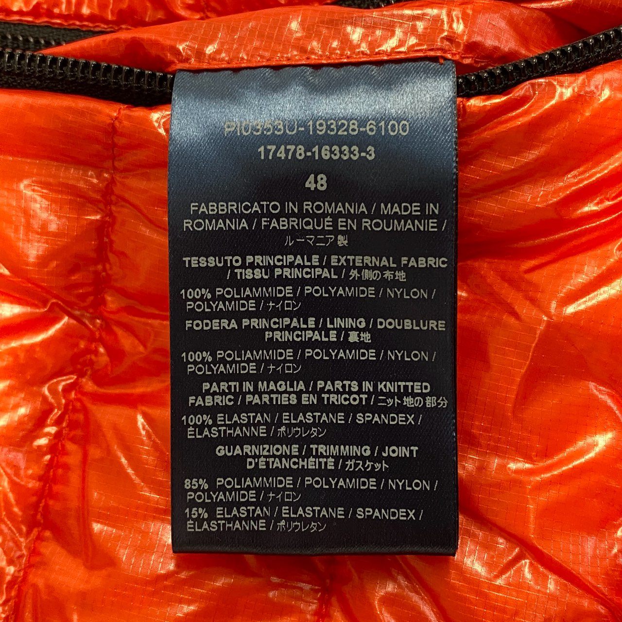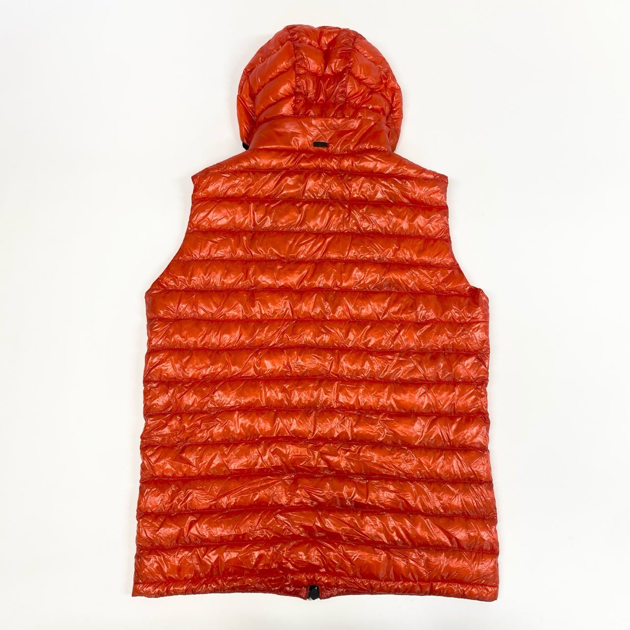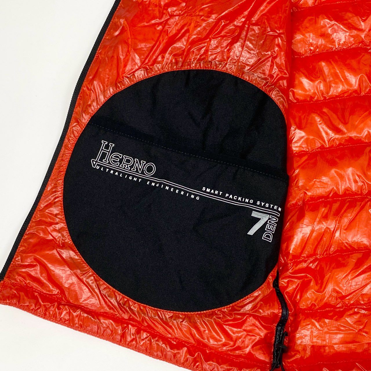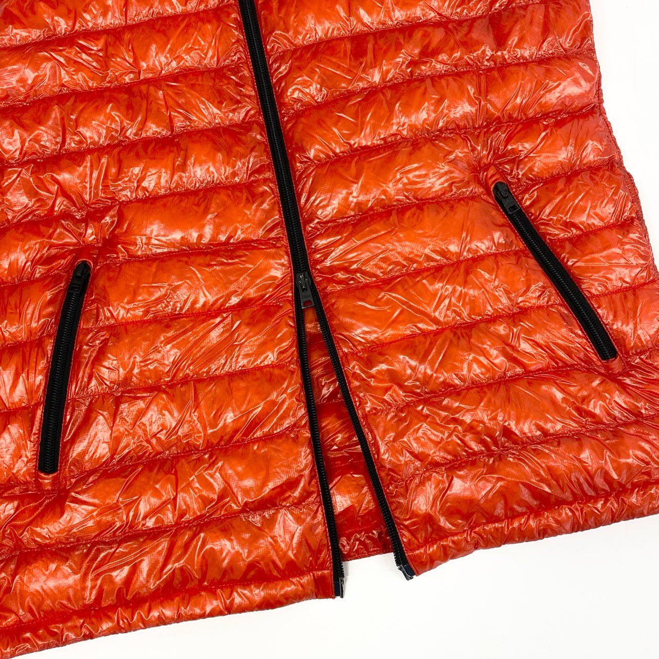 ヘルノの「17478-16333-3」フード付きライトダウンベスト。艶のあるブリックオレンジが印象的で、スタイリングのアクセントにも最適です。光沢ナイロン素材が上品なスポーティ感を演出し、ジップポケットやパイピングがシャープな印象に。軽量で着心地も抜群、フードは着脱可能で機能性も高く、タウンユースからアウトドアまで幅広く活躍する一着です。