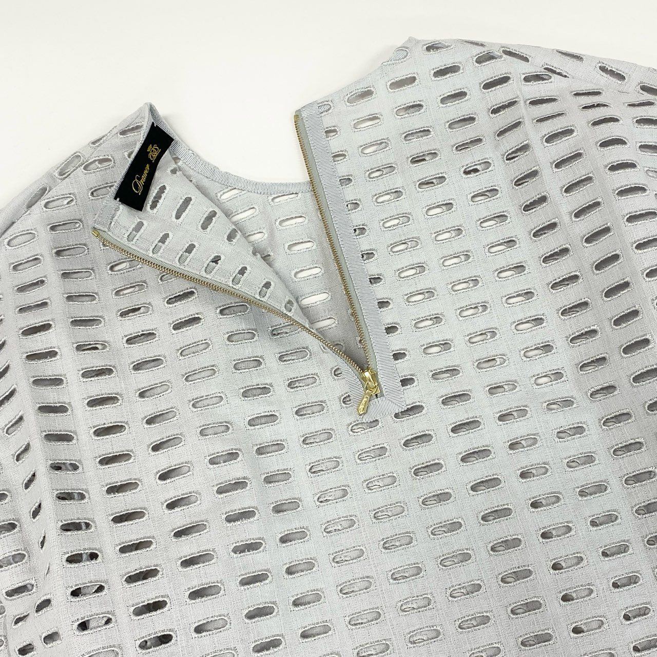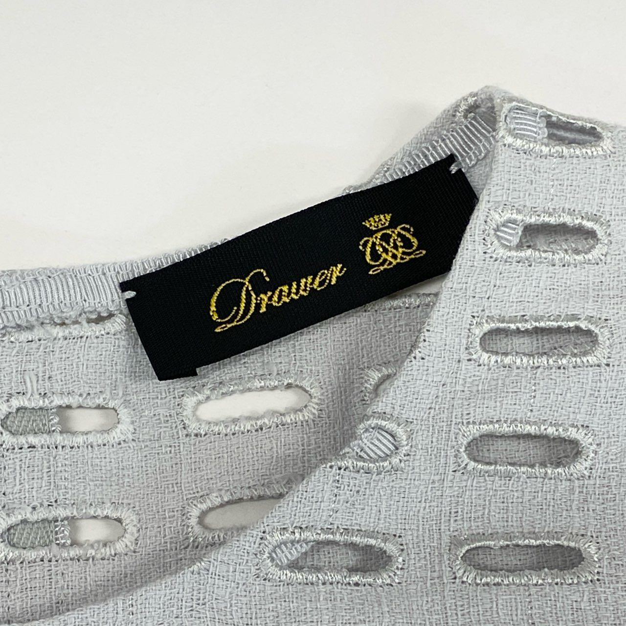 54g10 《美品》 Drawer ドゥロワー コットンエンブロイダリーブラウス F ライトグレー メッシュ カットソー Tシャツ 日本製
