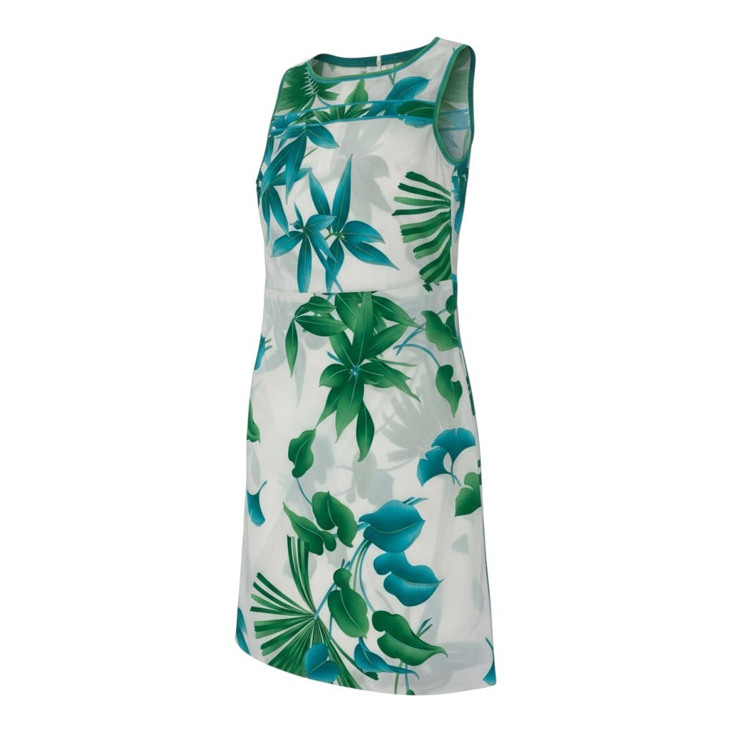 LEONARD(レオナール)の、ボタニカル柄が目を惹くカンカン素材ノースリーブワンピースです。ホワイトをベースに、鮮やかなグリーンとブルーのリーフ柄が清涼感のある印象を演出します。伸縮性と軽さに優れたカンカン生地は、暑い季節も快適に着られる人気素材。1枚でコーデが完成する華やかさと、エレガントなシルエットが魅力の一着です。お出かけからリゾート、ホテルディナーまで幅広く活躍します。