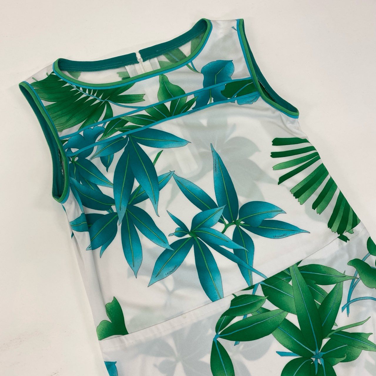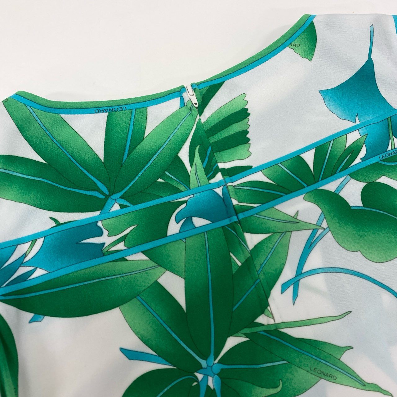 19k10 LEONARD レオナール ノースリーブワンピース ロングワンピース カンカン素材 0150242 42サイズ ホワイト グリーン レディースu02t