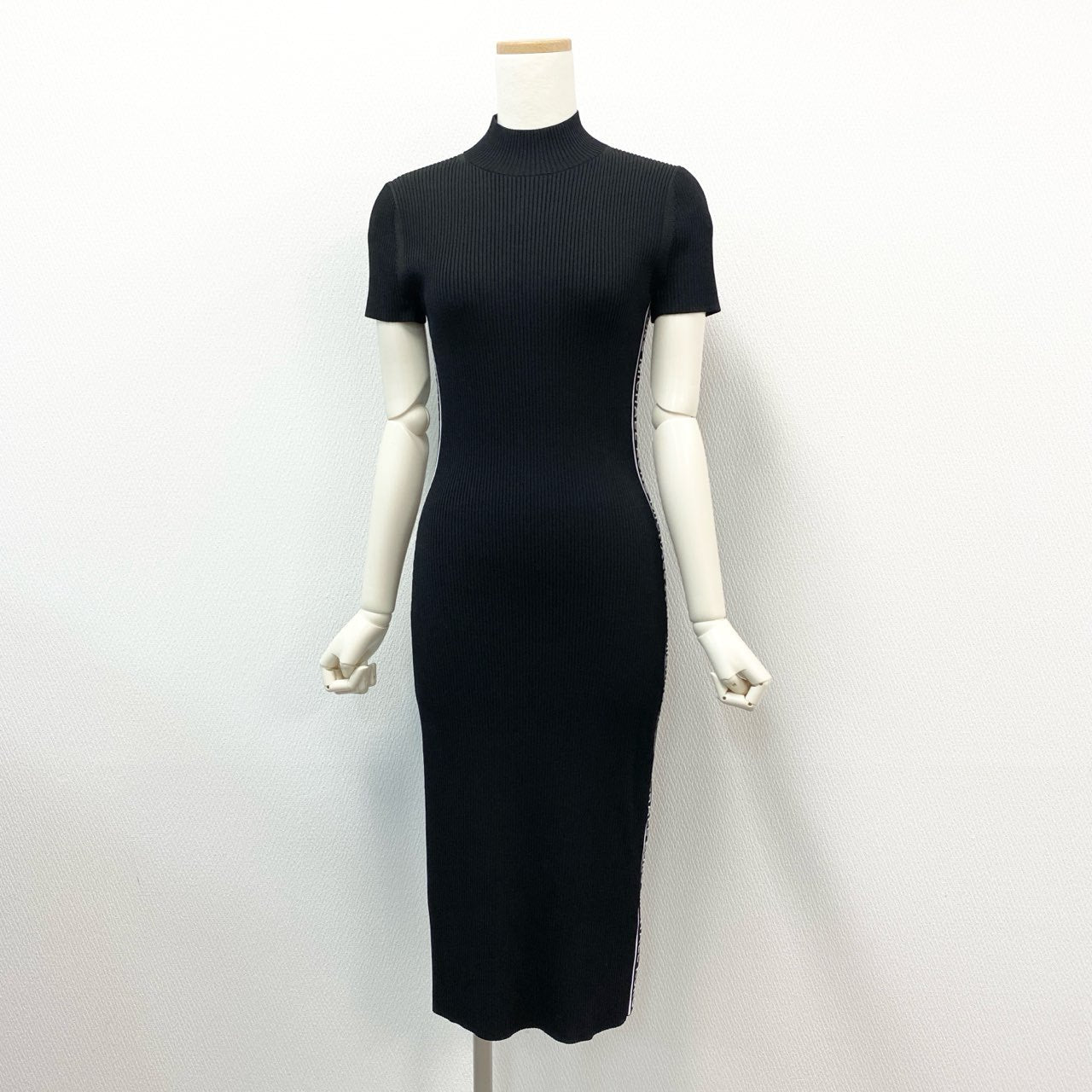 16j20 《美品》MICHAEL KORS マイケルコース サイドロゴテープ ニットワンピース タイトワンピース JS180LN5ZV Sサイズ ブラック ホワイト レディースu02t