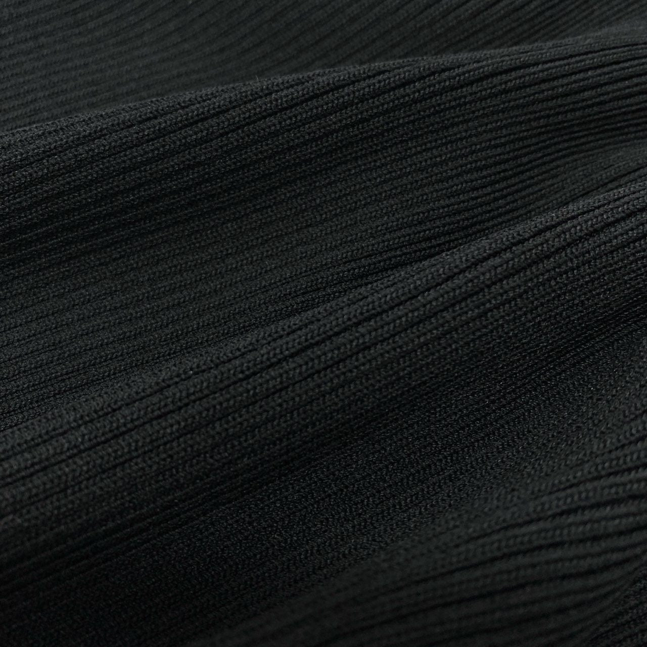 伸縮性のあるリブニット素材でボディラインに沿うタイトシルエット。
