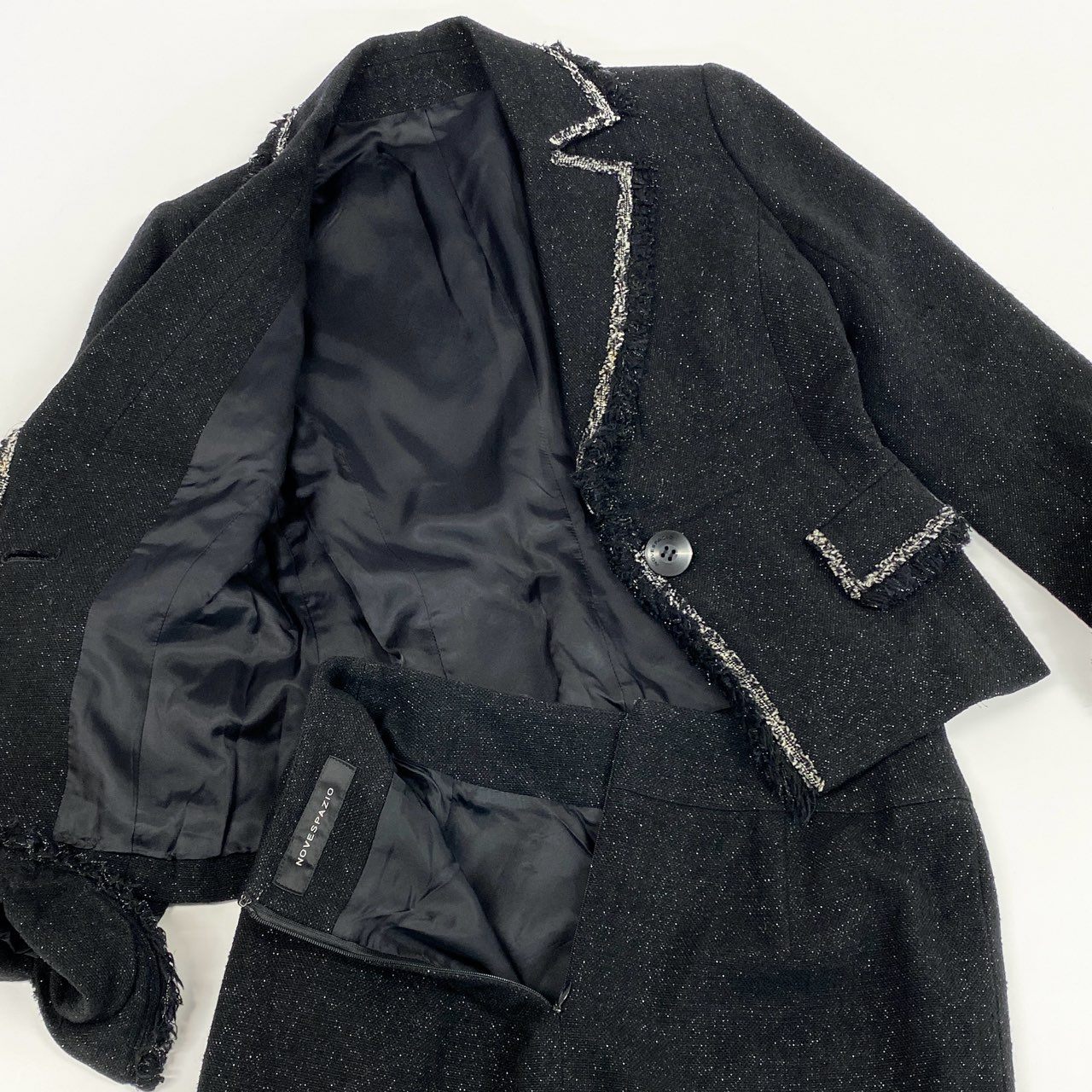 77j28 NOVESPAZIO ノーベスパジオ ツイードセットアップ ジャケット タイトスカート ラメ 033-250920 38サイズ ブラック レディースu02t