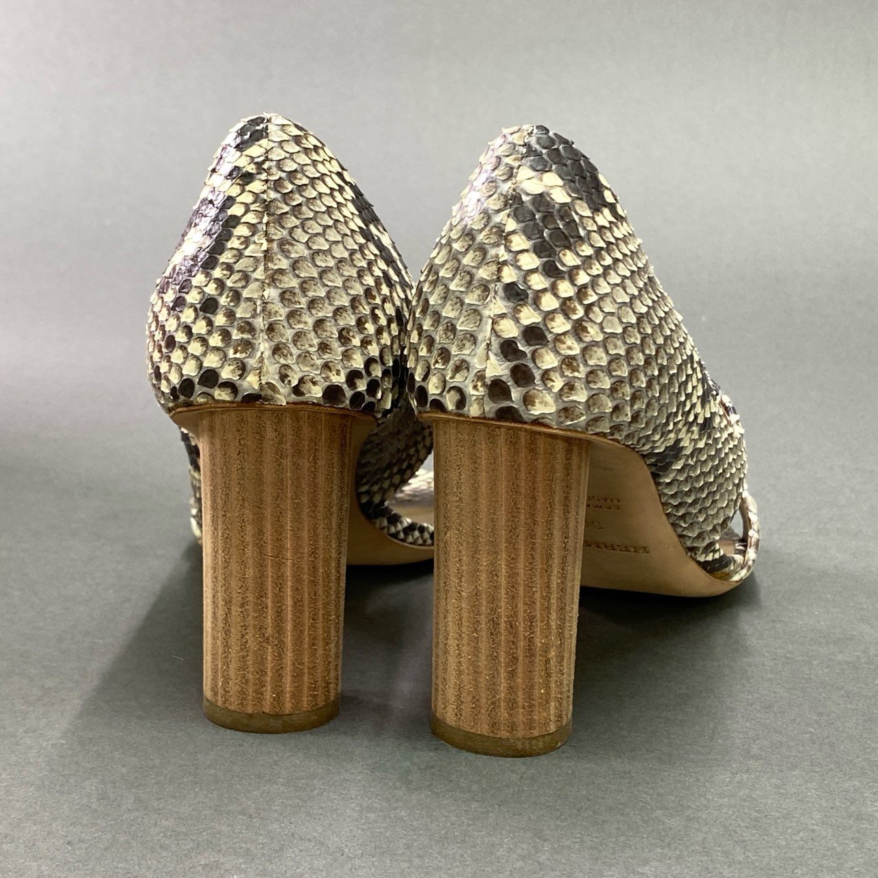 1k9 《美品》 HERMES エルメス パイソンレザー ヒールパンプス 36 グレージュ leather シューズ イタリア製 箱付 チャンキーヒール