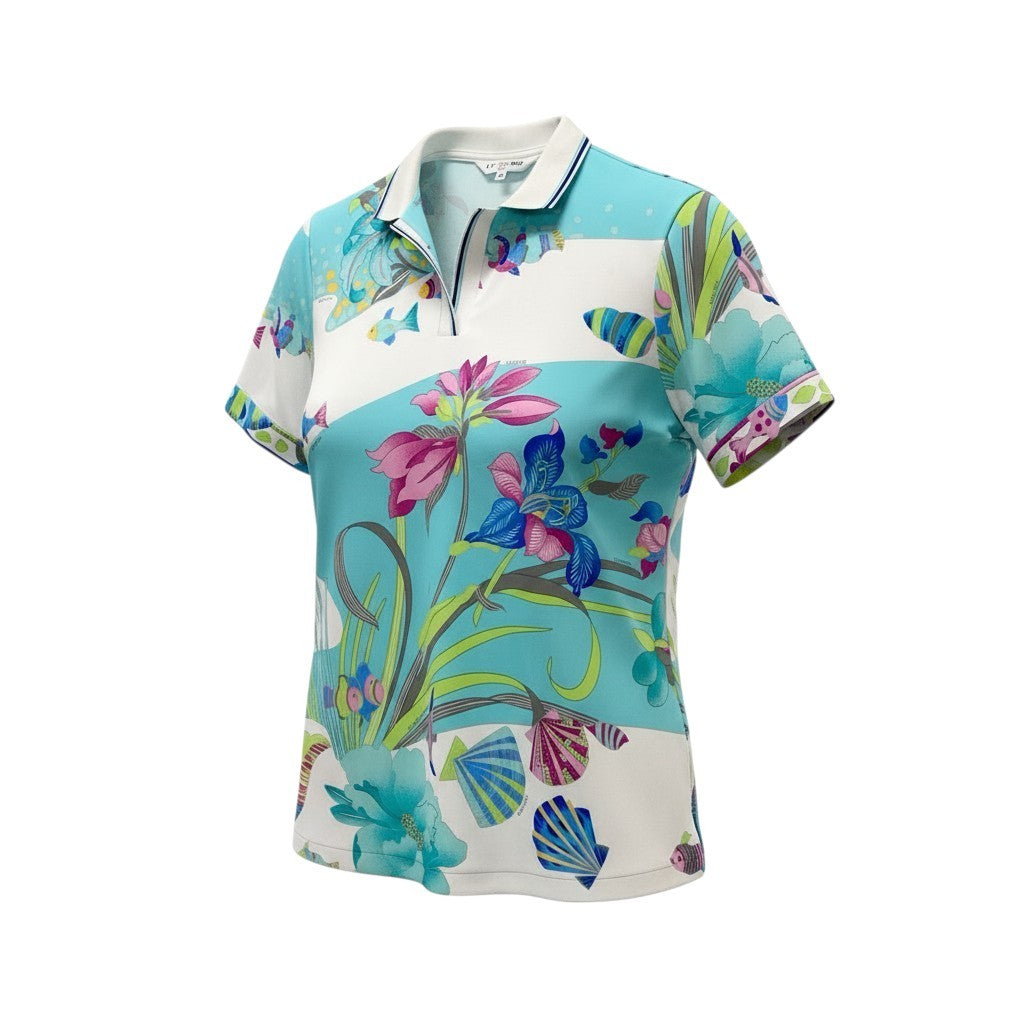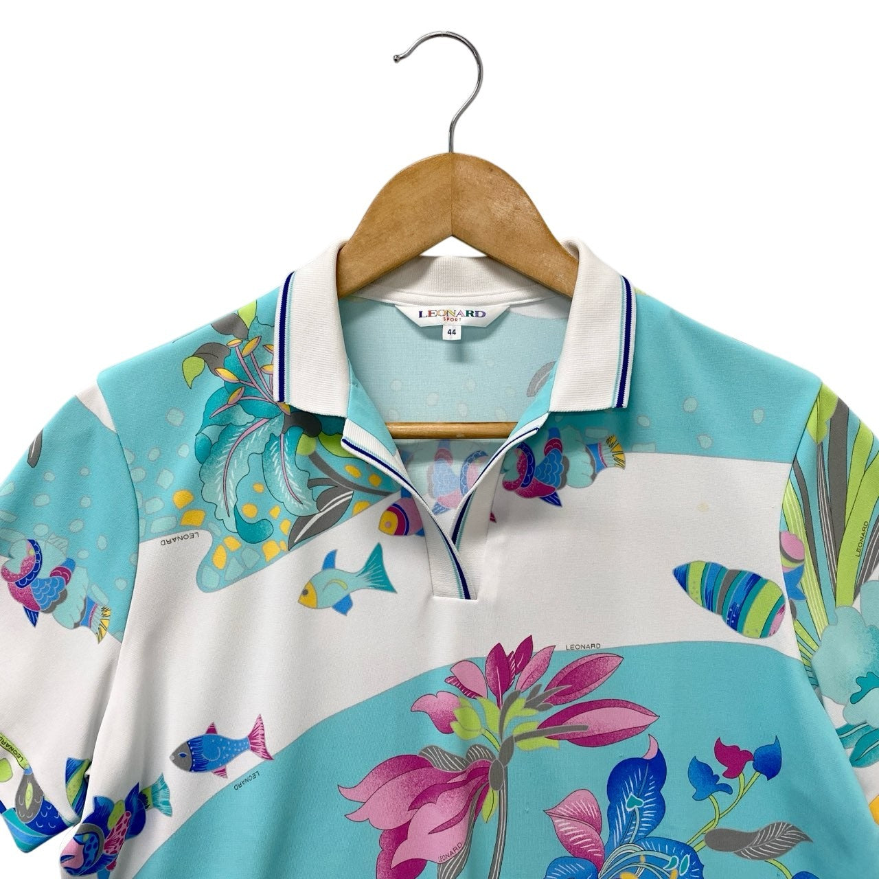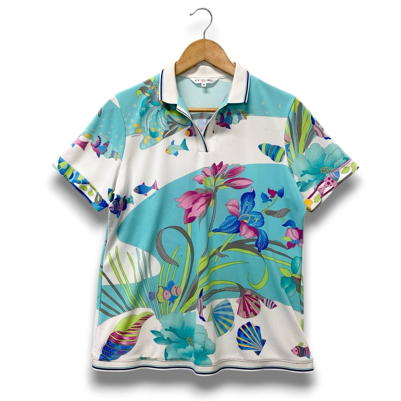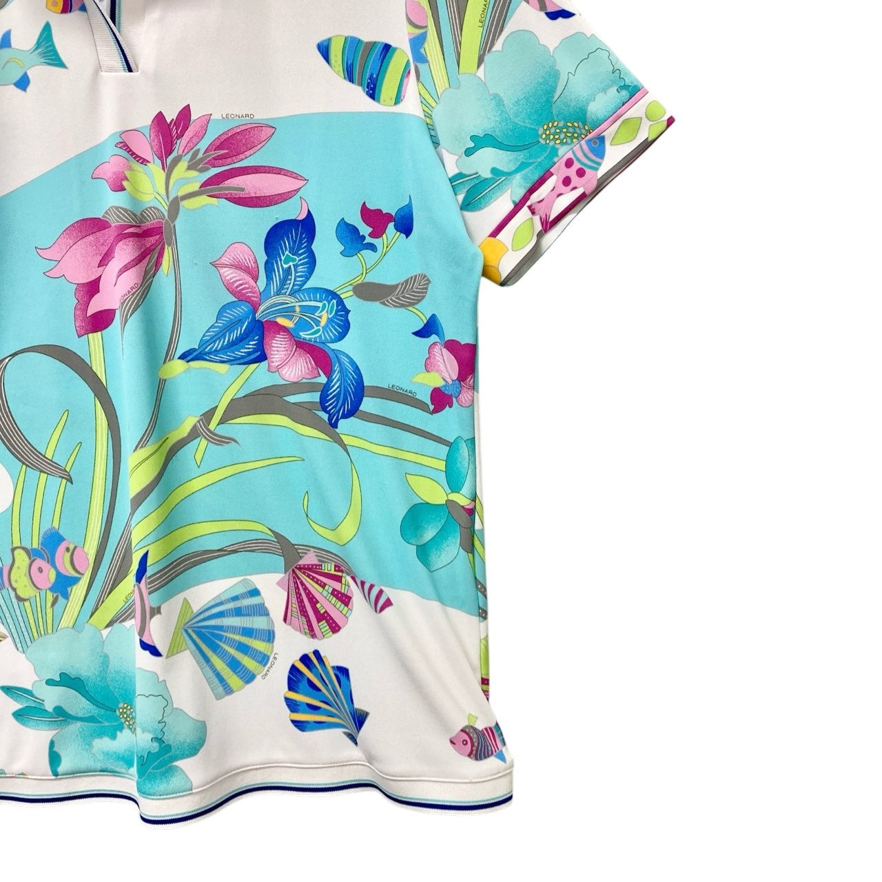 5c6 LEONARD レオナール 半袖ポロシャツ 美しいプリント 魚 花柄 0578703 44サイズ マルチカラー ポリエステル100% レディース 女性用u02t