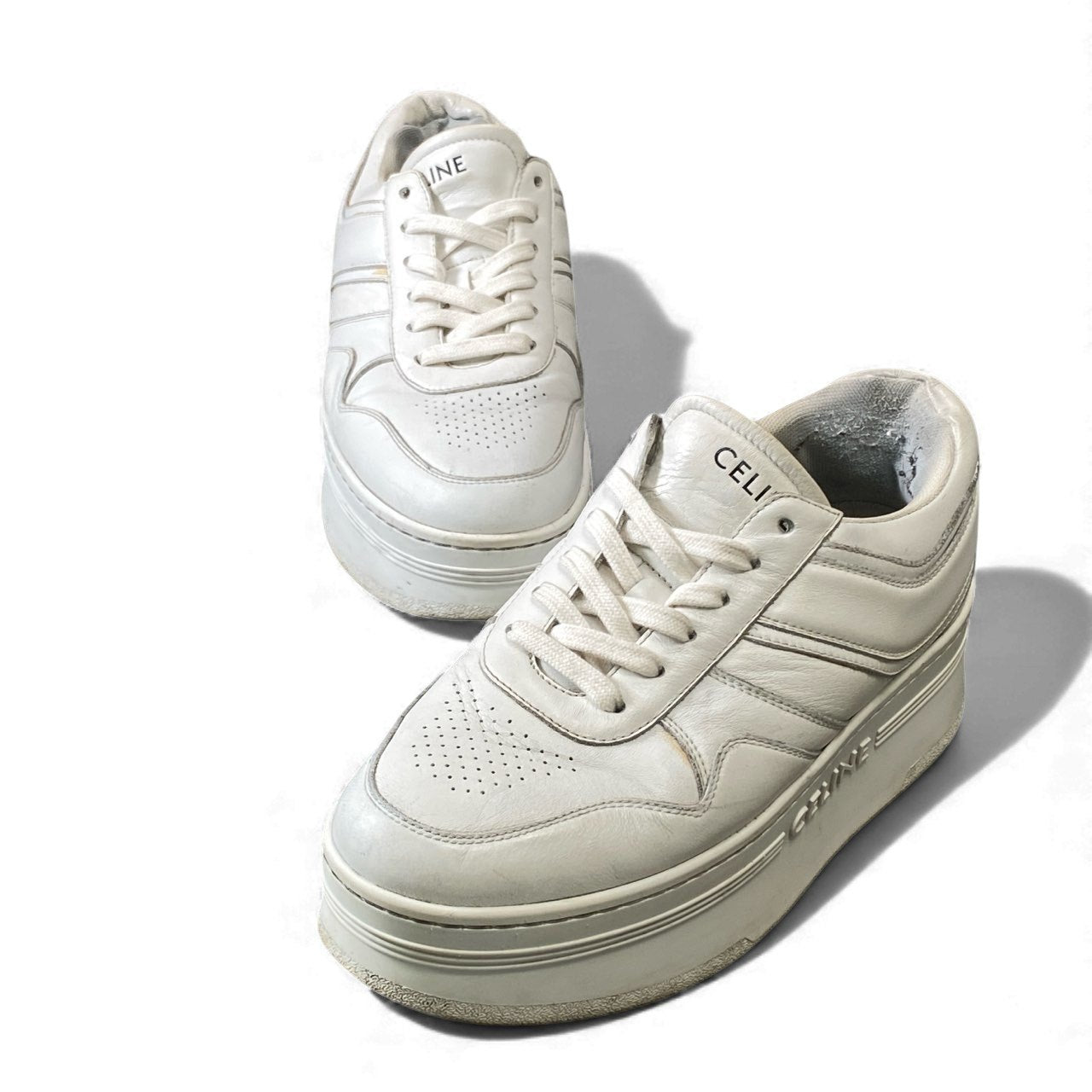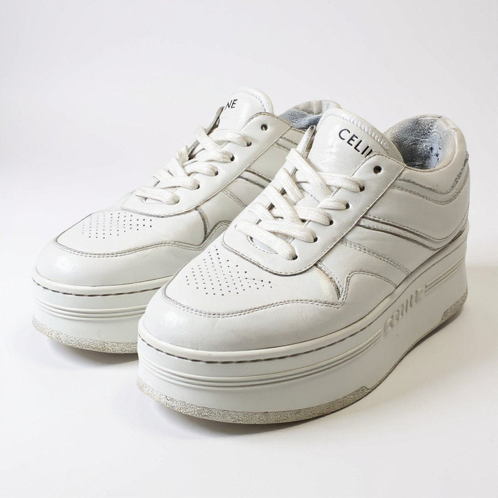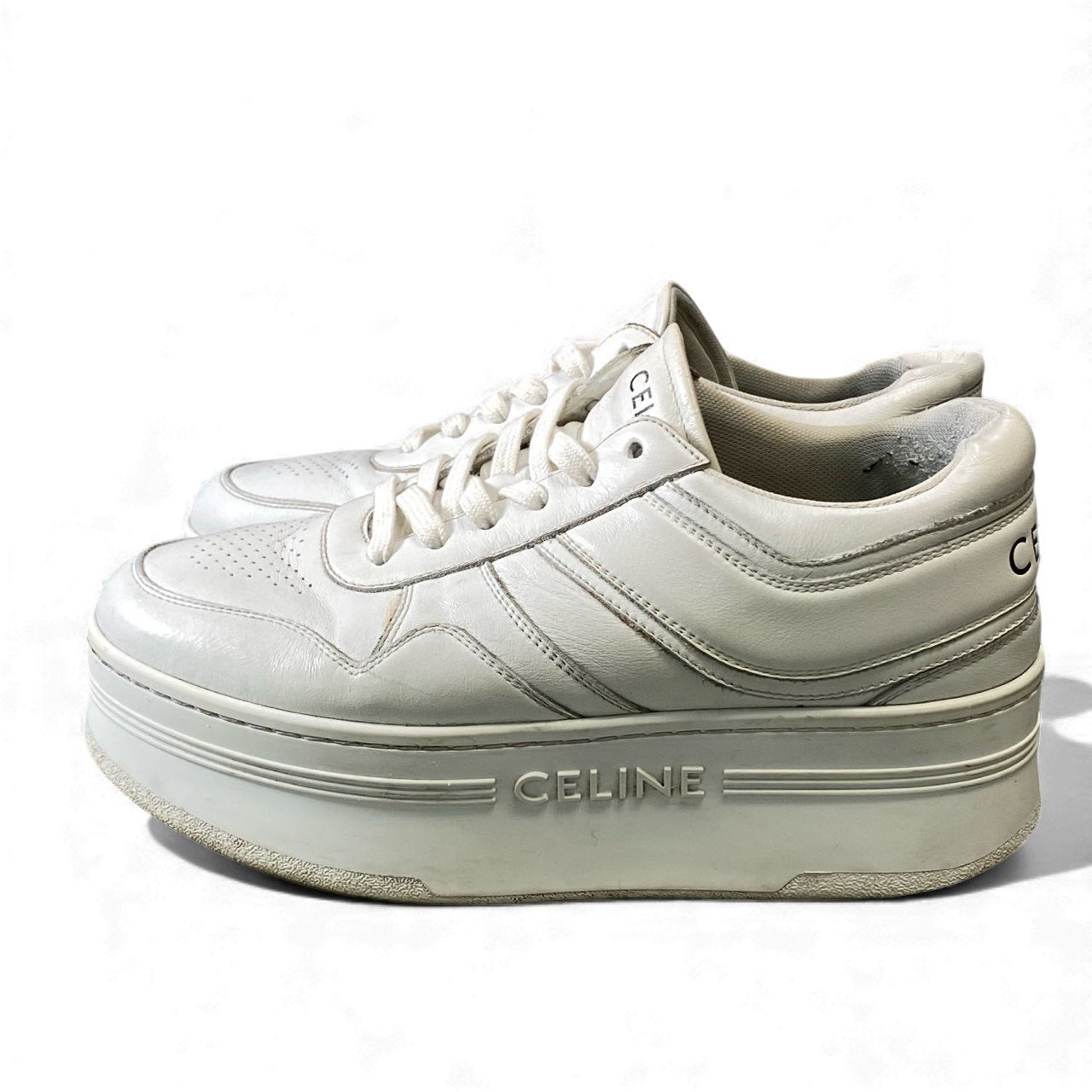 1k16 Celine セリーヌ ブロックスニーカー 38 ホワイト レザー 厚底 プラットフォーム シューズt18r