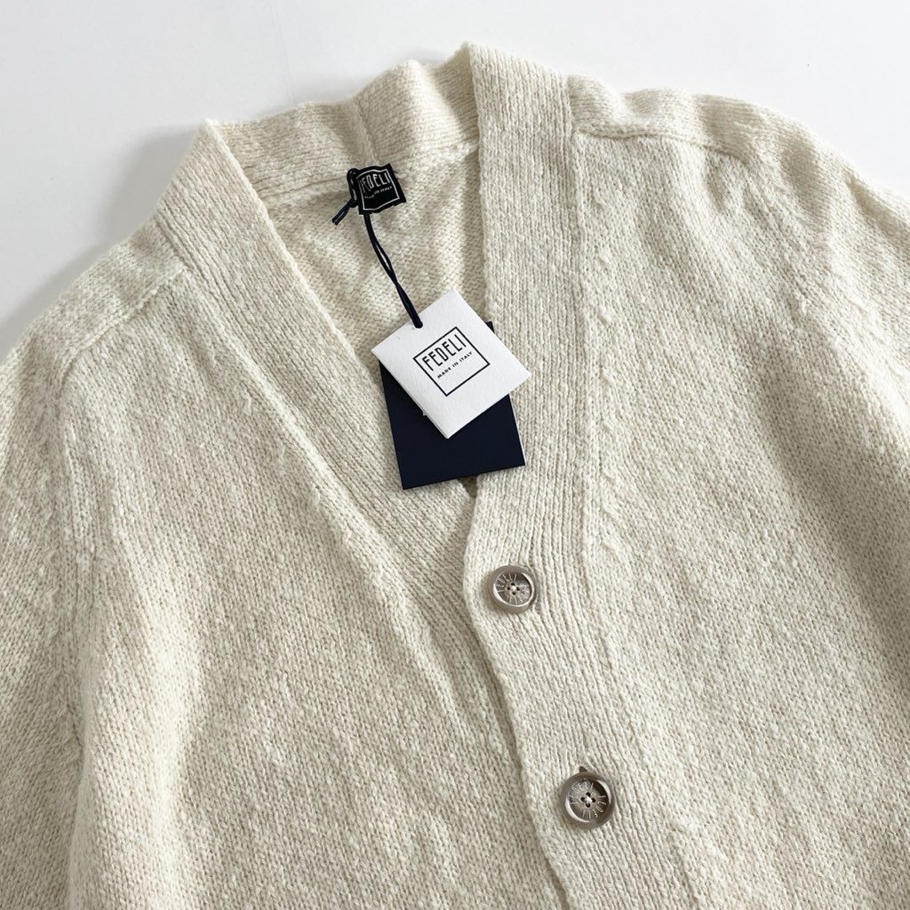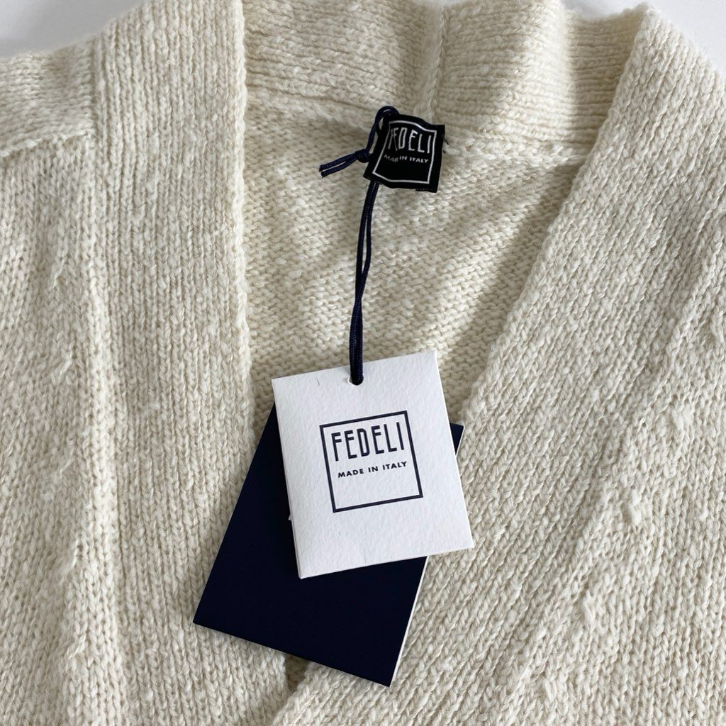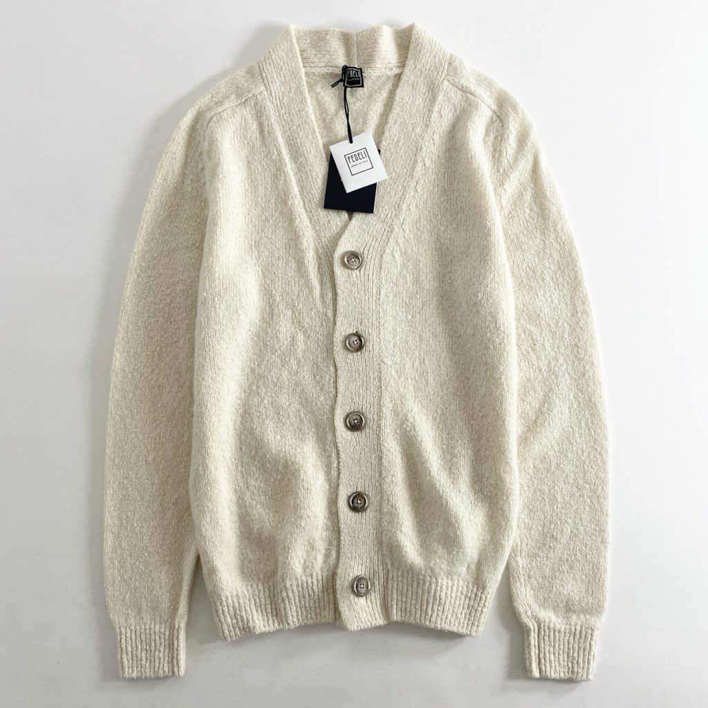 83h27 《未使用》 イタリア製 FEDELI フェデリ カシミア100% ロゴボタン ロングスリーブ ニット セーター カーディガン サイズ44 クリーム カシミヤ100% メンズ