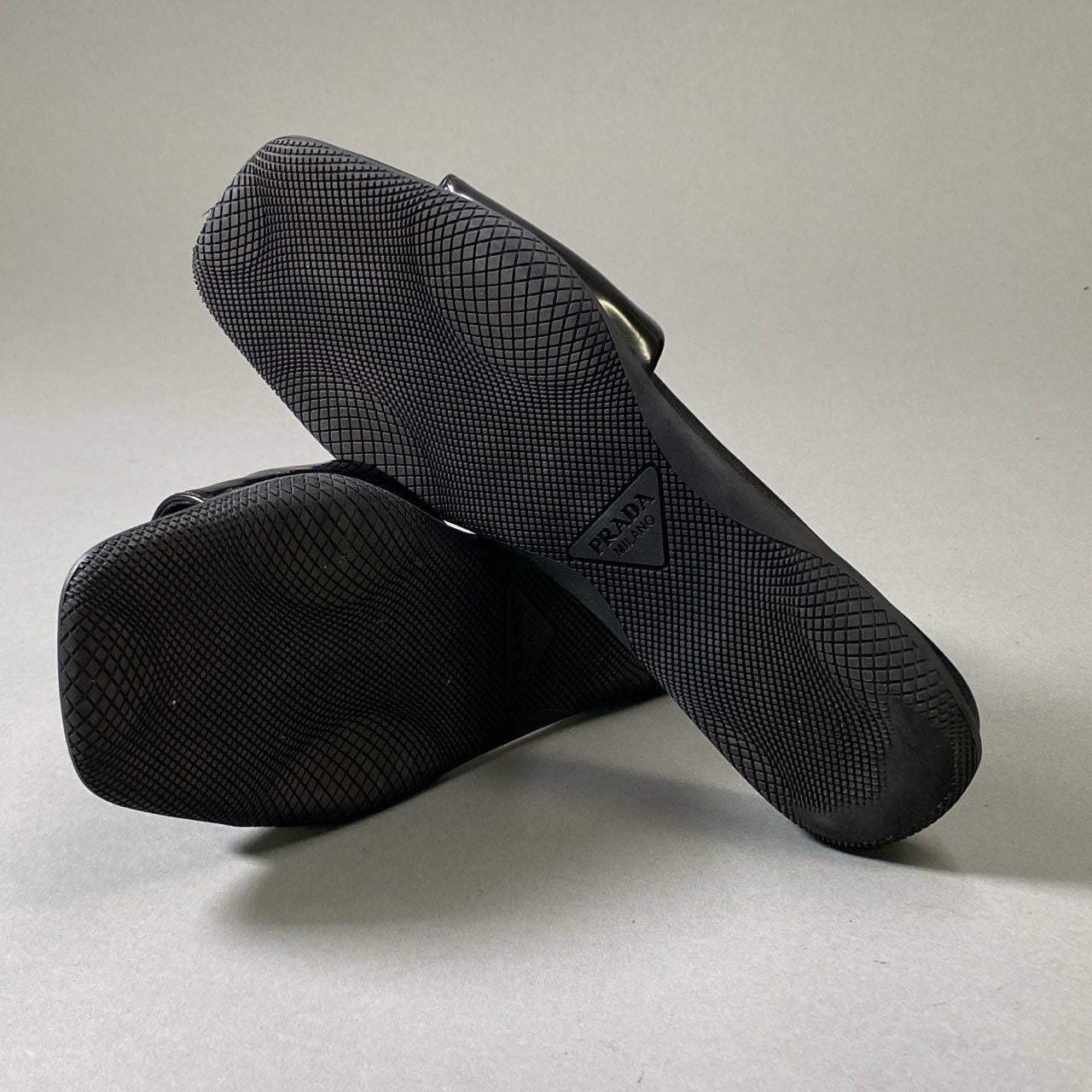 3i30 《美品》 PRADA プラダ トライアングルロゴ パデッドナッパレザーサンダル 35 1/2 ブラック ミュール 三角ロゴ シューズt18r