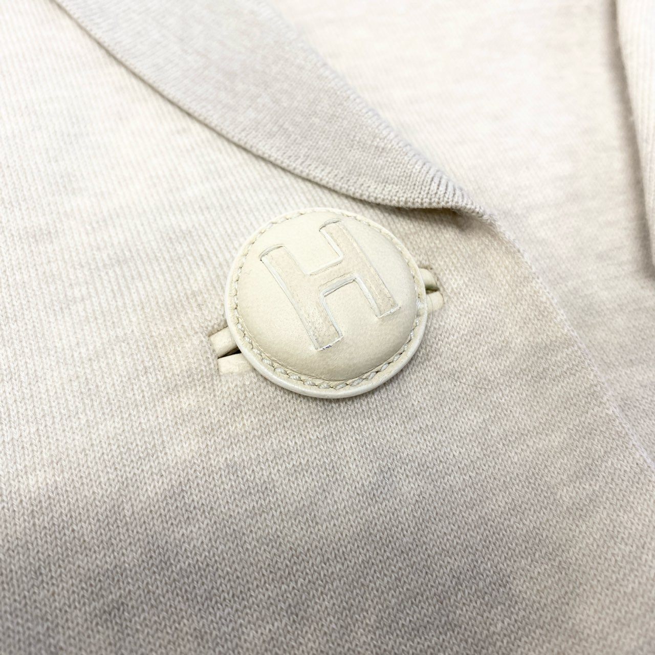 86a16 HERMES エルメス ニットジャケット ハイゲージニット Hロゴ レザーボタン レディース 女性用 サイズ40 ライトベージュ系o07t