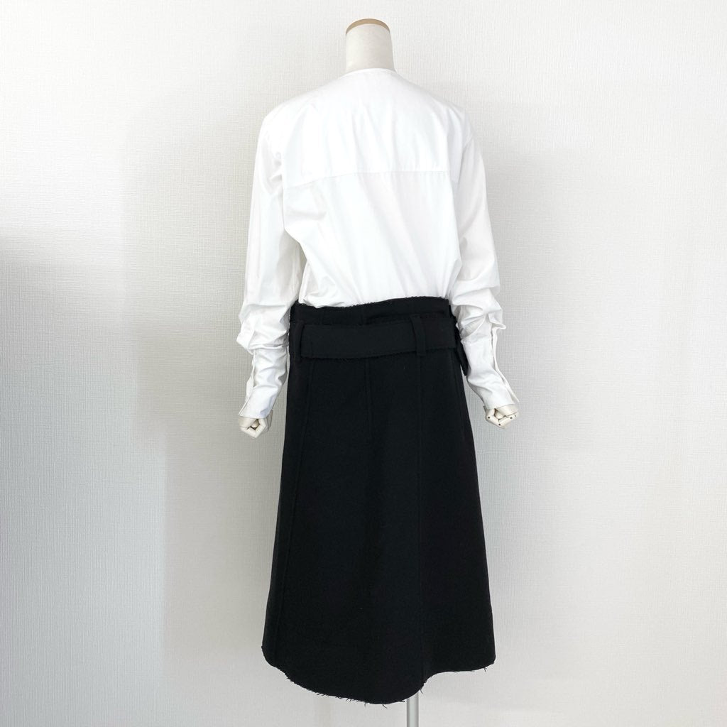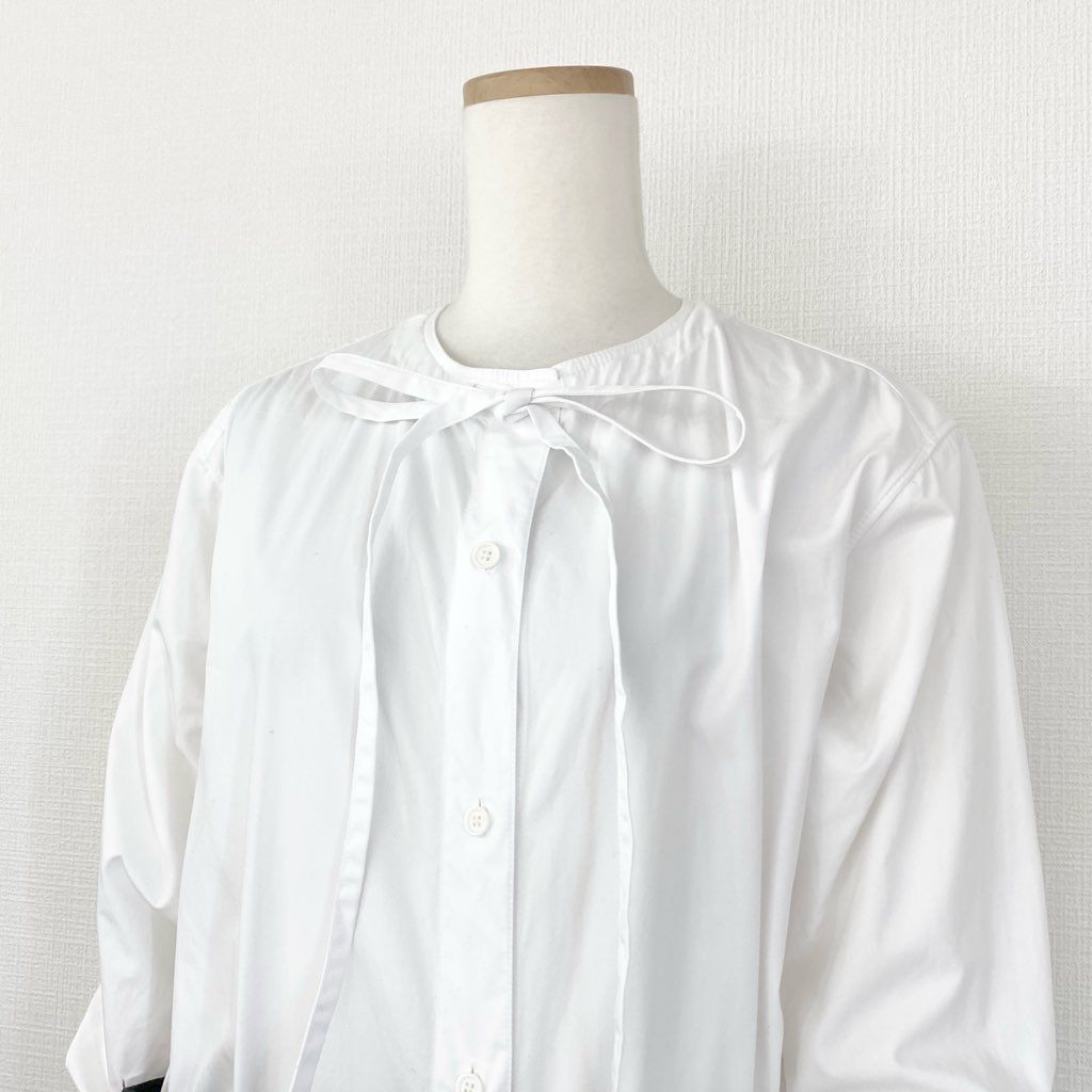 34f8 CELINE セリーヌ フィービー期 ノーカラーシャツ 長袖ワンピース 切替 サイズ34 ホワイト/ブラック レディース