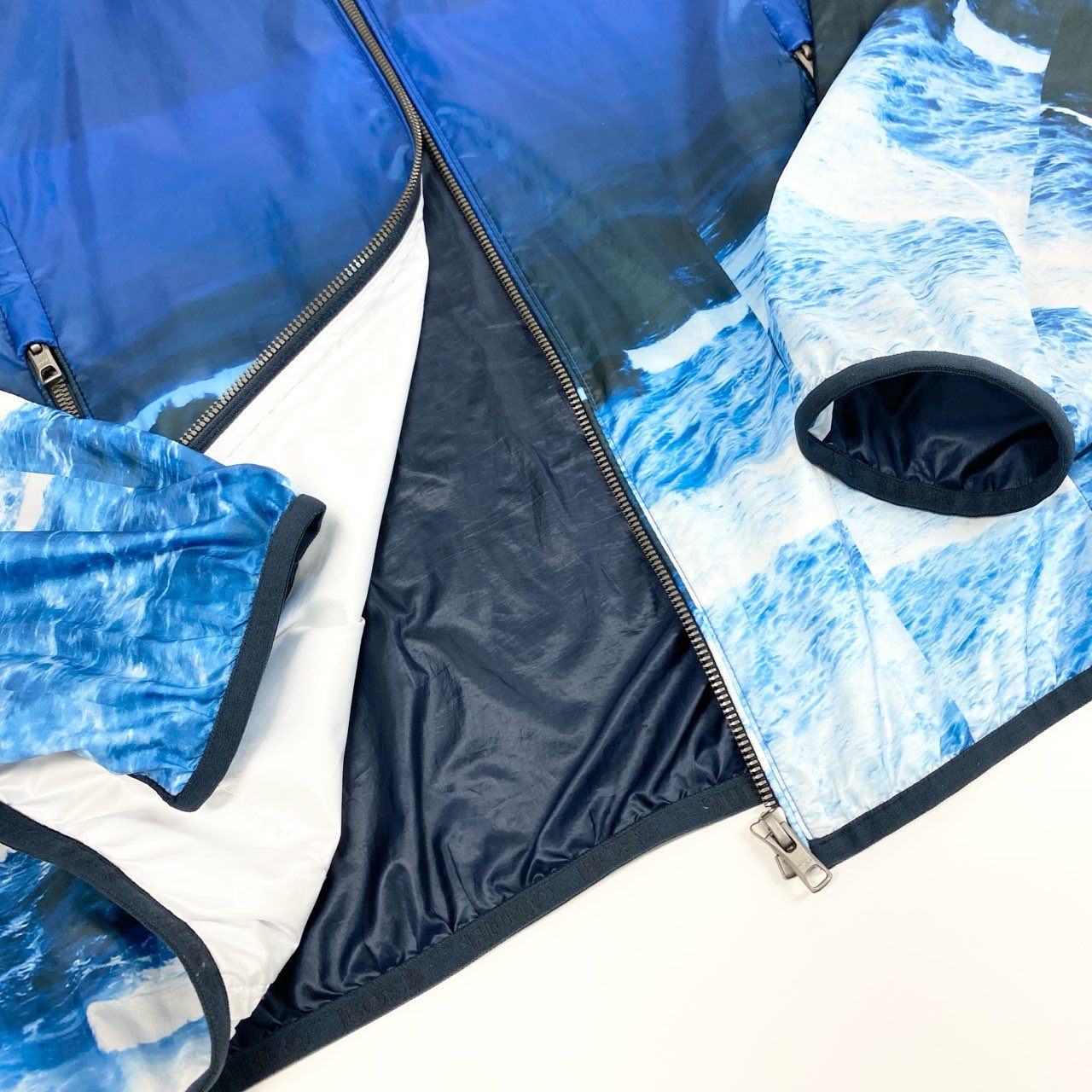 45j10 HUGO BOSS ヒューゴボス パッカブルジャケット ウィンドブレーカー ジャケット トップス 波模様 XLサイズ ブルー系 メンズu02t