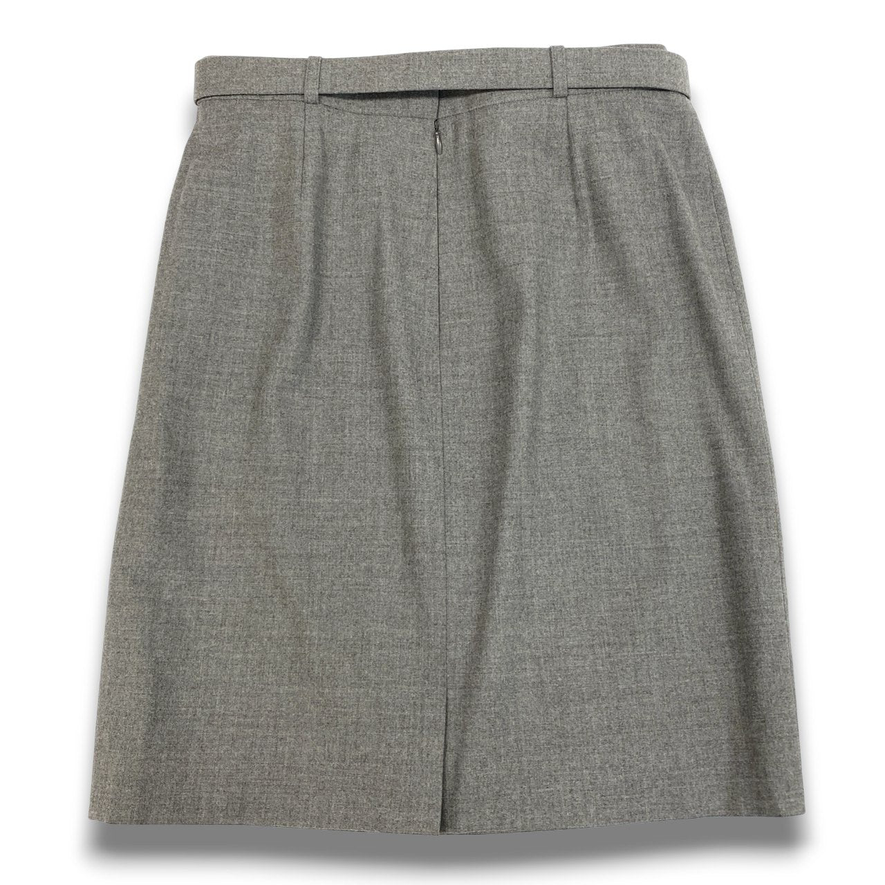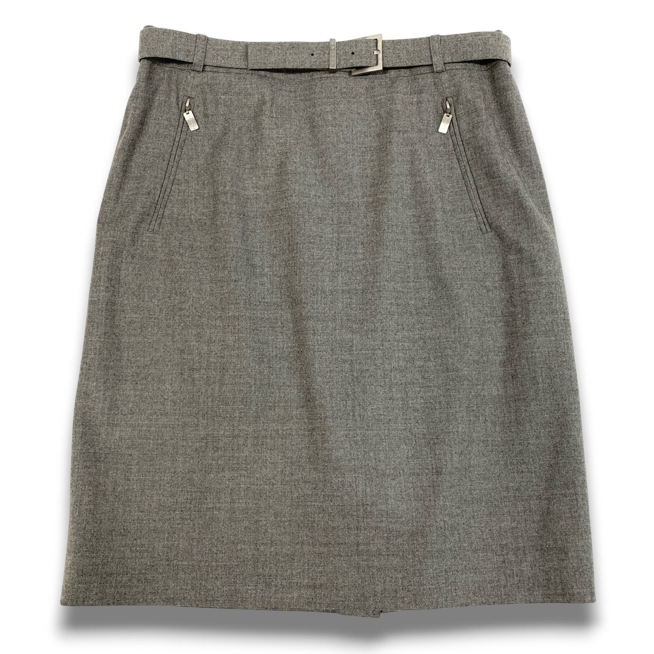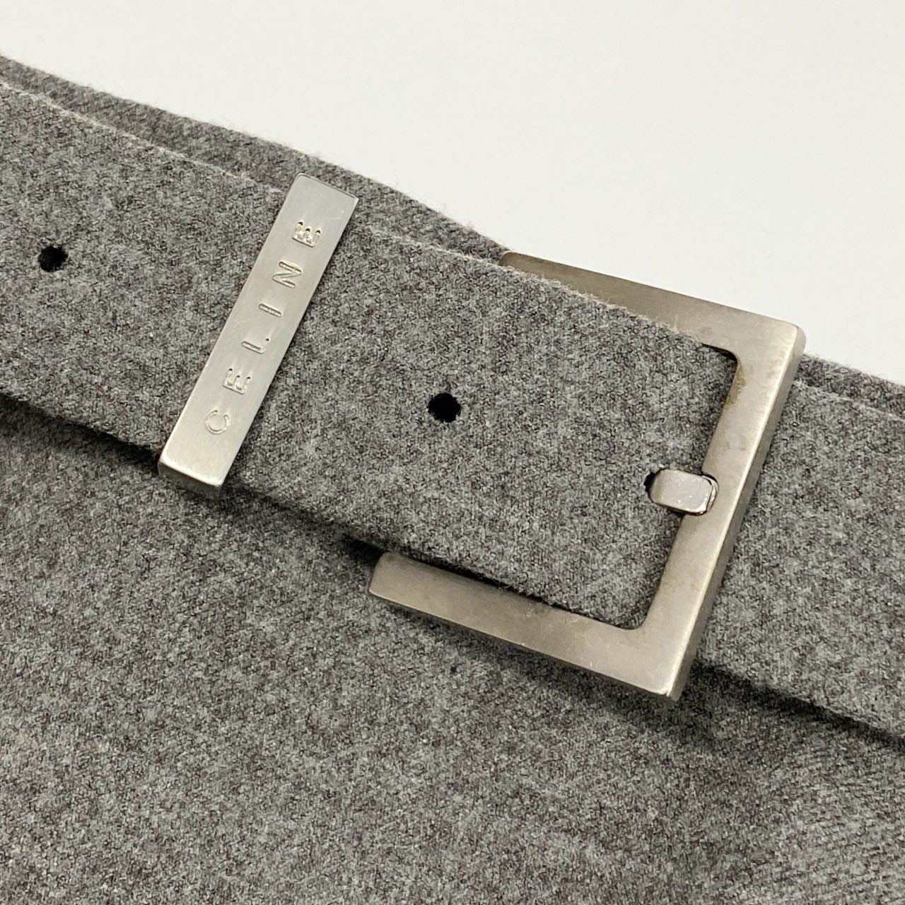 28b20 Vintage CELINE セリーヌ ロゴベルト付き タイトスカート 膝丈 46 グレー フランス製 大きいサイズu02t