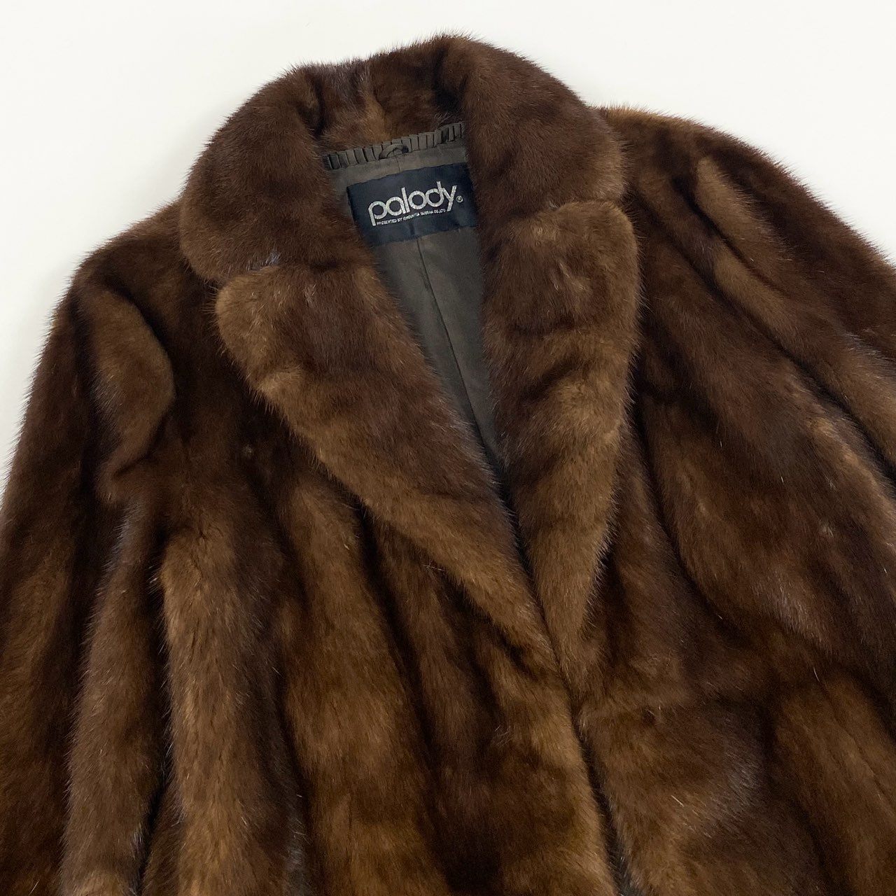 37L10 palody MITSUKOSHI 三越 デミバフミンク ロングコート サイズ9号 ブラウン 本毛皮 MINK FUR ポケット有t18r