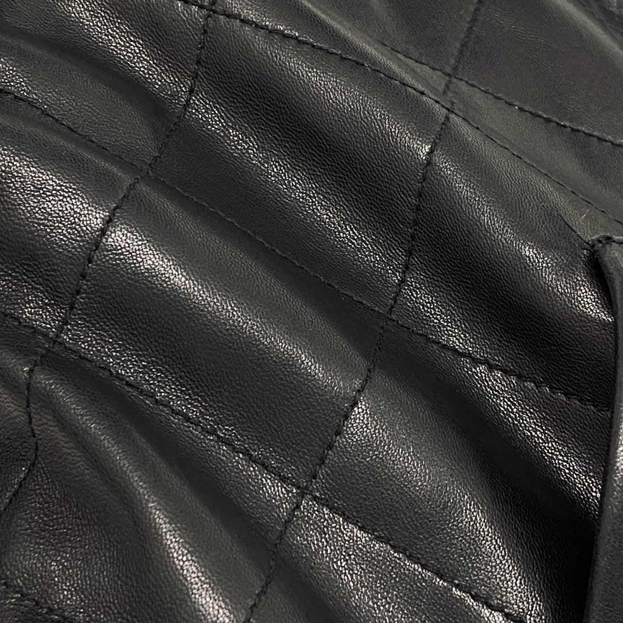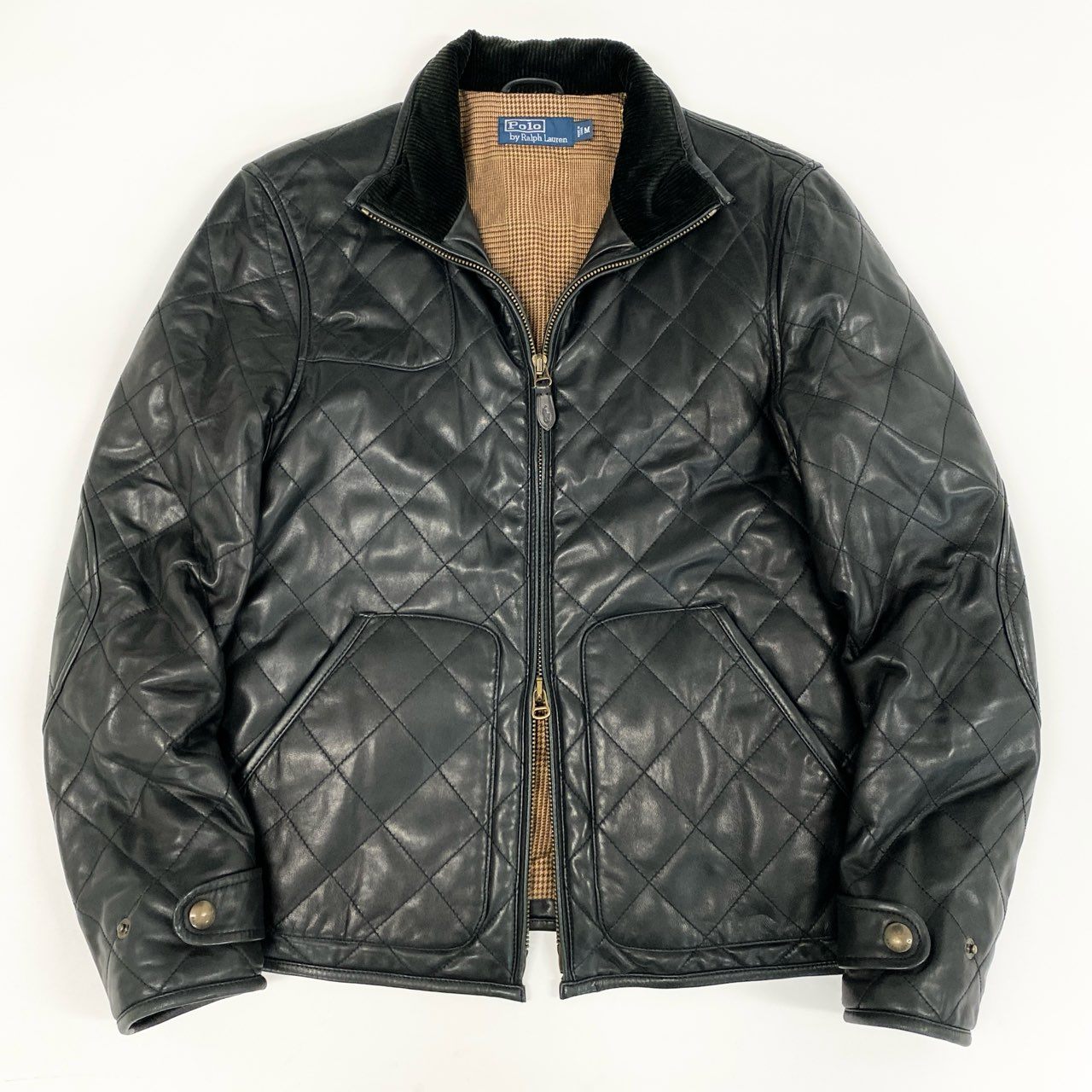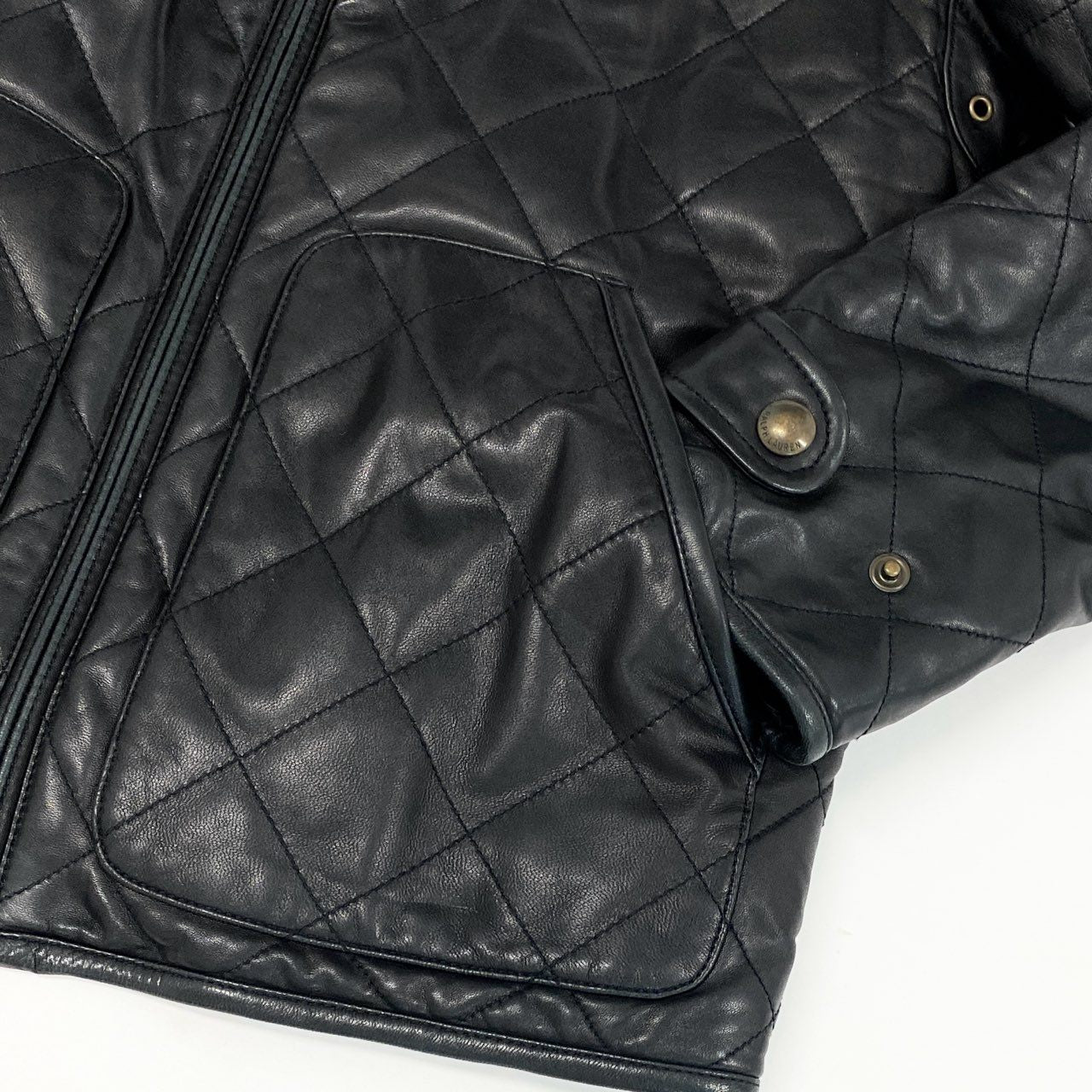 ポロラルフローレンのシングルライダースジャケット、ブラックカラーの羊革を使用したキルティングデザインです。ダイヤ型のステッチパターンにより立体感があり、光沢のあるレザーが上品かつ武骨な印象を演出。襟はコーデュロイ切替、フロントはブランドらしいポニーモチーフのジップ仕様で高級感があります。中綿入りで防寒性が高く、タウンユースからアウトドア、バイクシーンまで幅広く活躍する一着です。