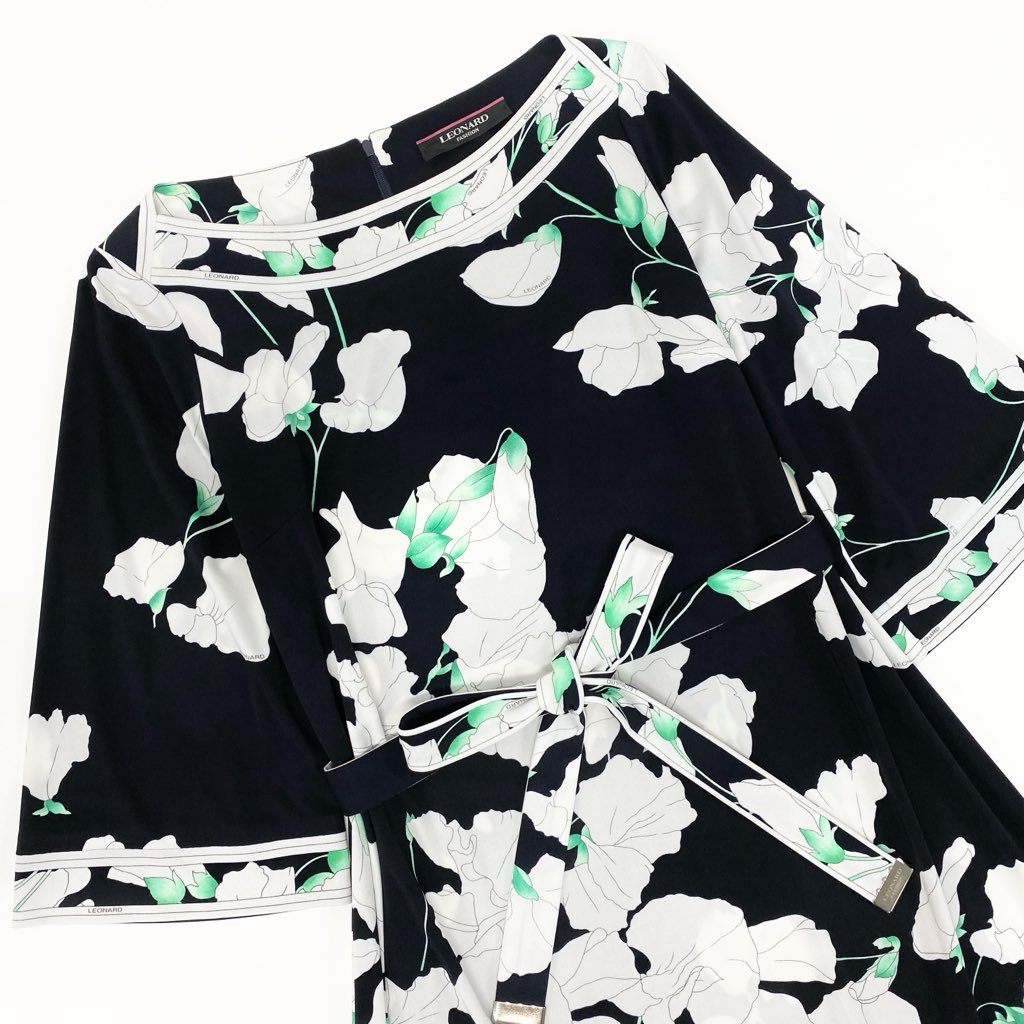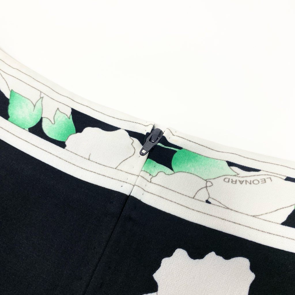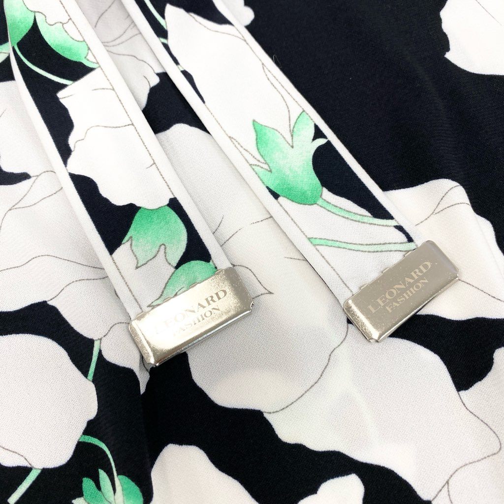 40l25 LEONARD レオナール カンカン素材ロングワンピース 7分袖 美しい花柄プリント 40 ブラック ホワイト レディースu02t