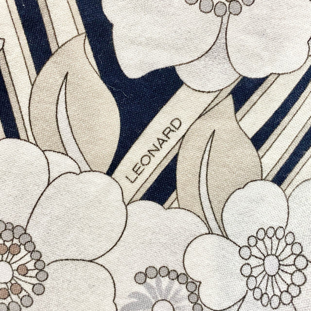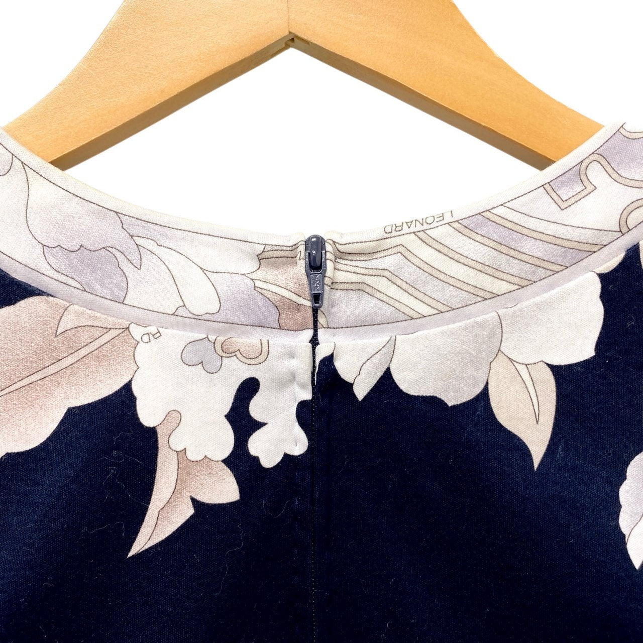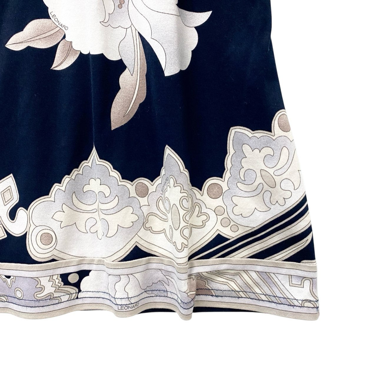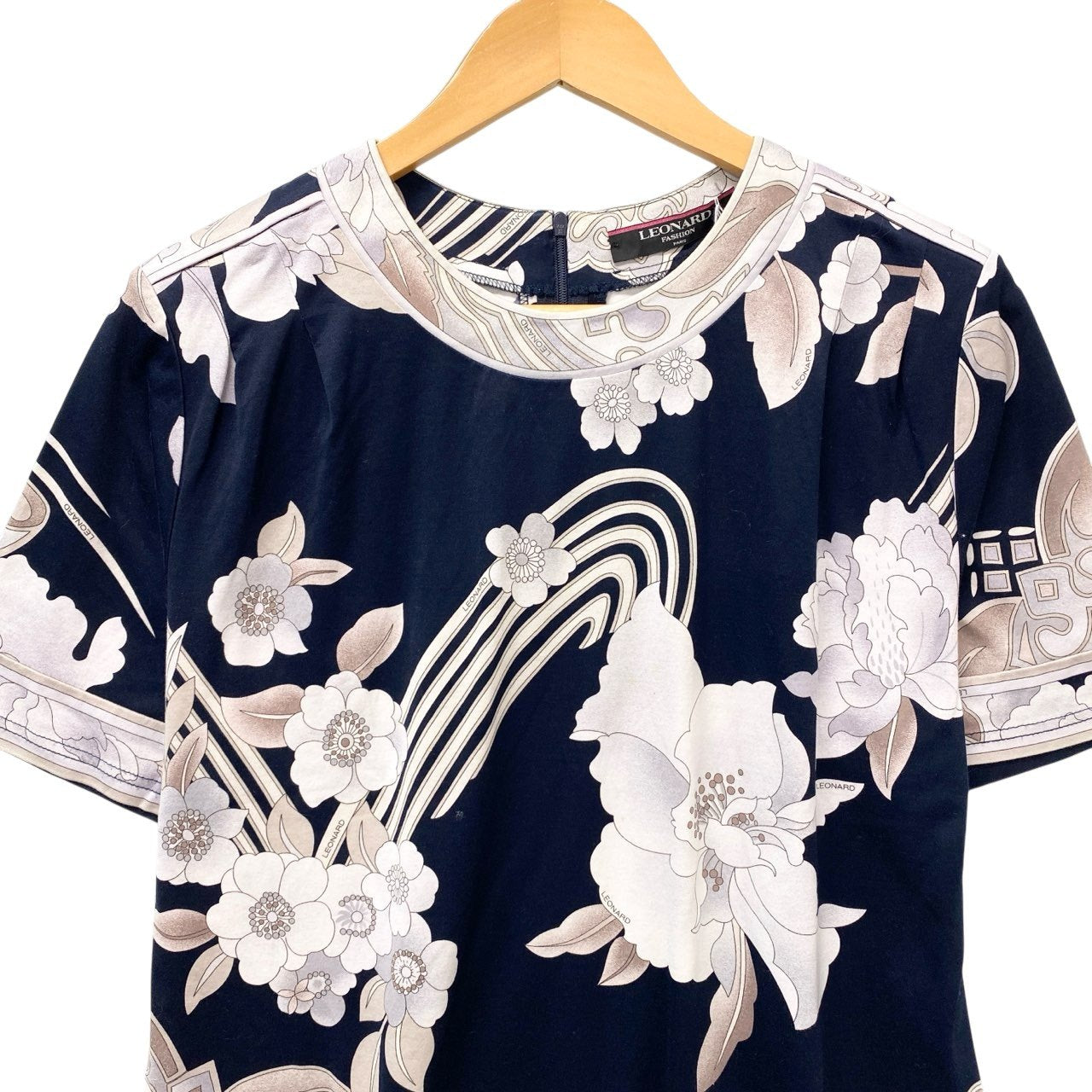 75b26 LEONARD レオナール ラウンドネック半袖Tシャツ 美しい花柄プリント 0379125 Lサイズ ネイビー系 コットン100% レディース 女性用u02t