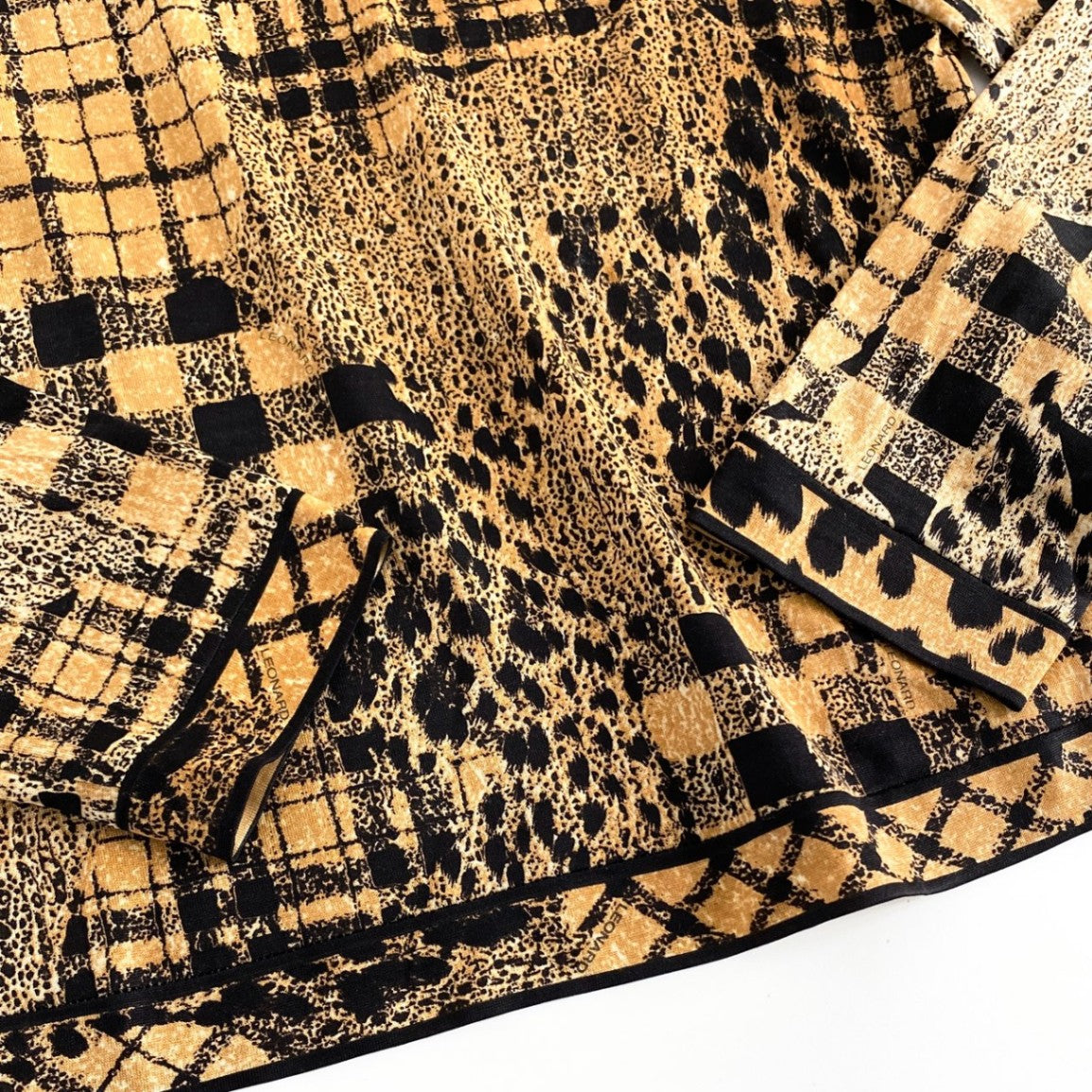 4e11 LEONARD レオナール 伸縮ストレッチ素材 ハイネック 長袖Tシャツ カットソー トップス サイズM オレンジ ブラック レディース 日本製