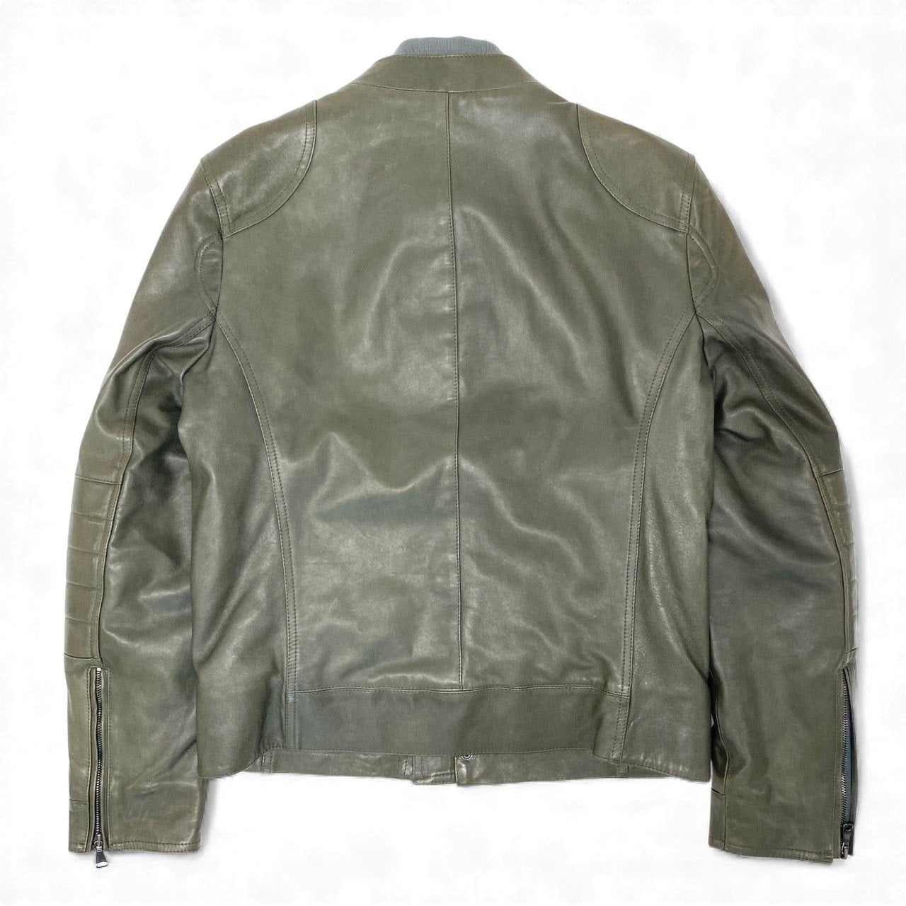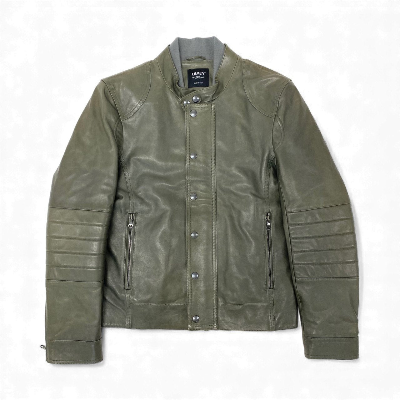 77L8 EMMETI di Franco エンメティ イタリア製 レザー ジャケット シングルライダースジャケット 重ね襟 本革 ラムスキン メンズ 紳士服 46 カーキu02t