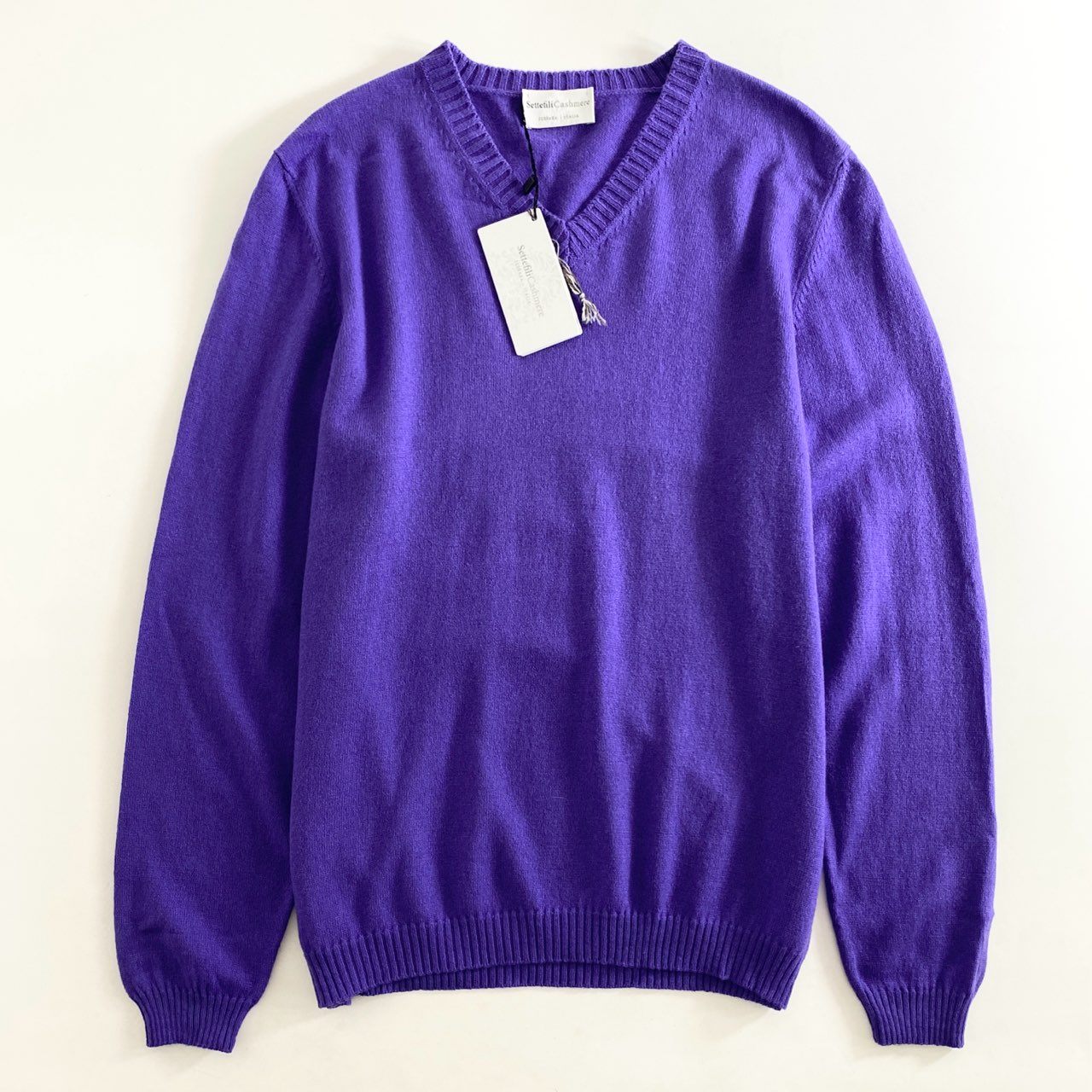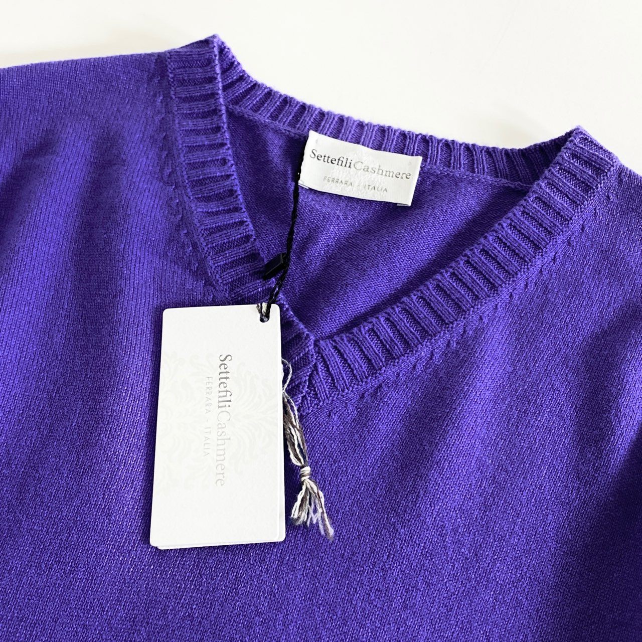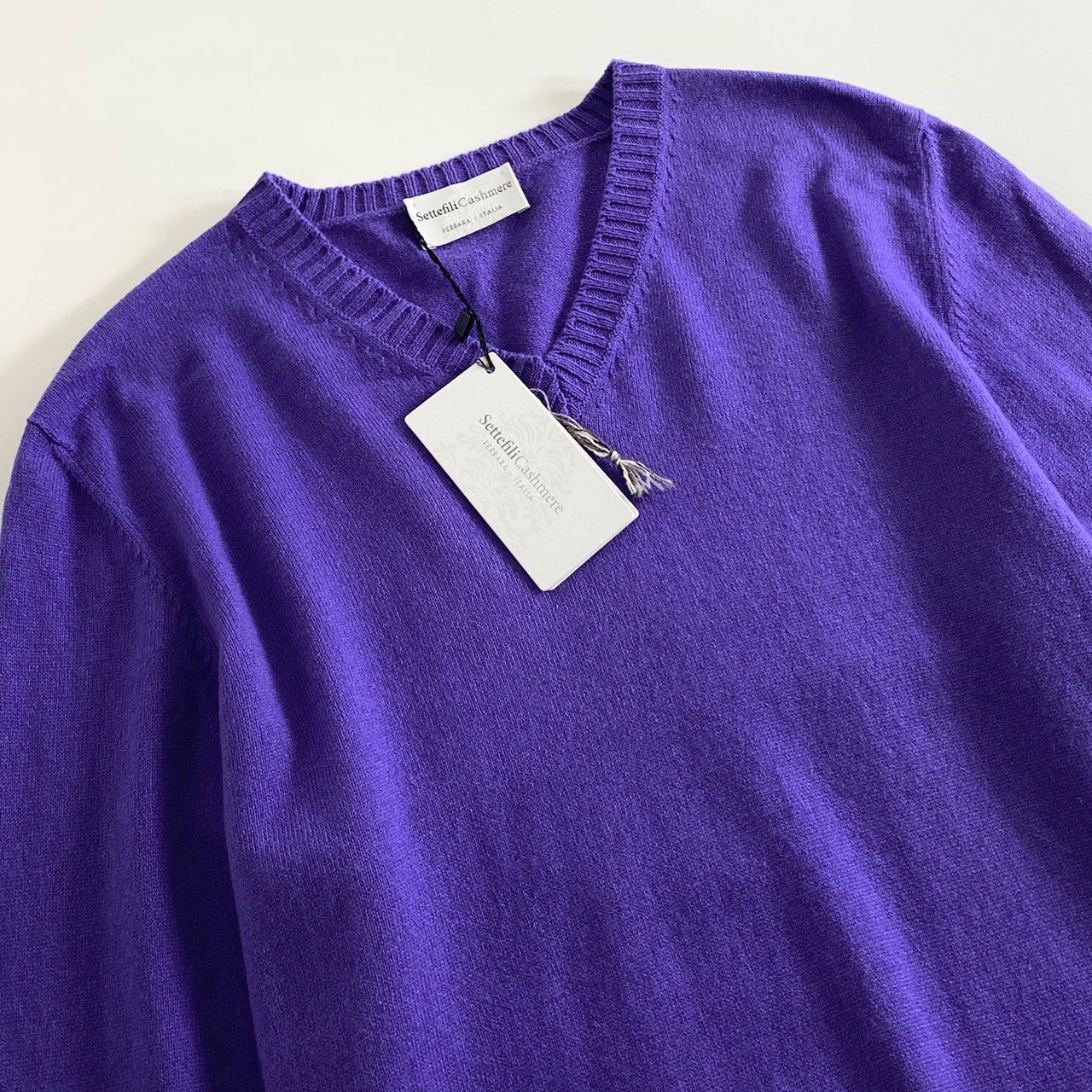 83h27 《未使用保管品》 イタリア製 Settefili Cashmere セッテフィーリカシミア Vネックニット セーターサイズ46 パープル カシミヤシルク メンズ 紳士服